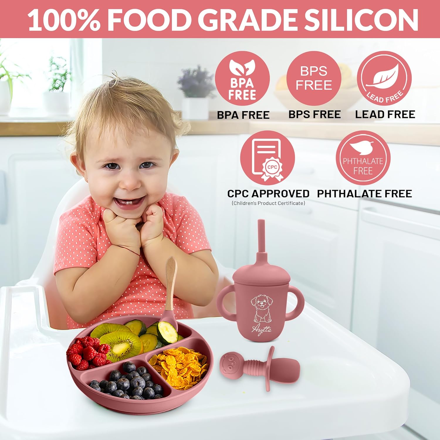 Child-Led Weaning Excellence: Elevate your child’s self-feeding journey with our Silicone Child Feeding Set. Specifically designed for the primary levels of self-eating, this set features a divided plate, suction bowl, silicone bib, sippy cup, spoons, and forks. Encourage independence and exploration in a protected and mess-free method.