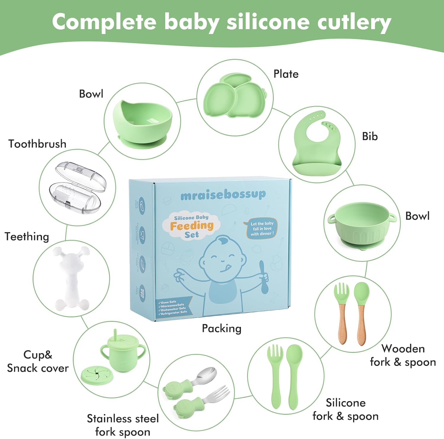 【EASY TO CLEAN】mraisebossup silicone child feeding set could be very straightforward to wash, even with water rinsing might be washed clear, it’s light-weight, waterproof, straightforward to dry, can be utilized time and again for a very long time with out substitute. All elements are protected to position in dishwasher, sterilizer and different environments for cleansing