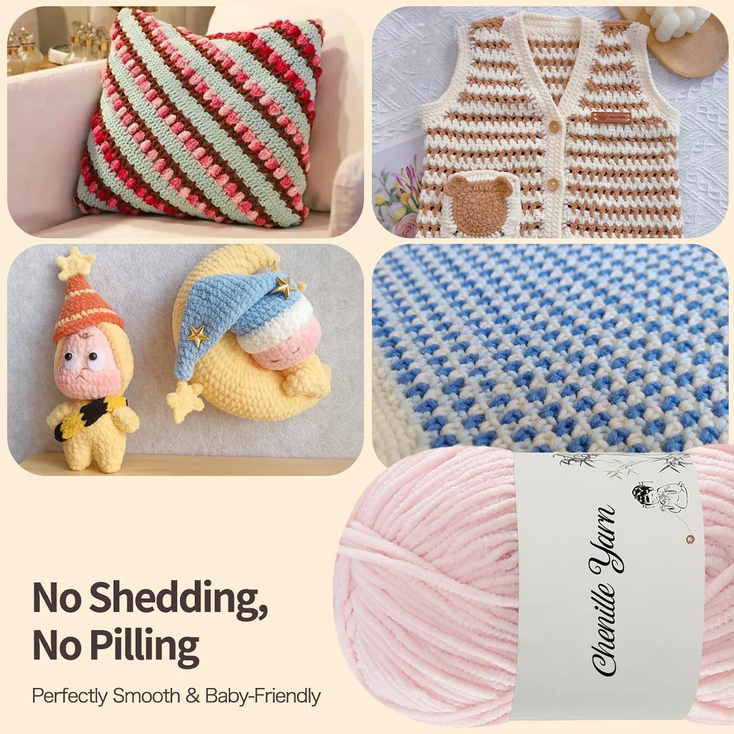 Chenille Yarn Equipment for Crocheting: This tender yarn contains 4 skeins (every skein is 50g/1.76 oz, 145 meters/158 yards), appropriate for newbie crochet yarn, child blanket yarn, and tremendous chenille yarn for hand crocheting.