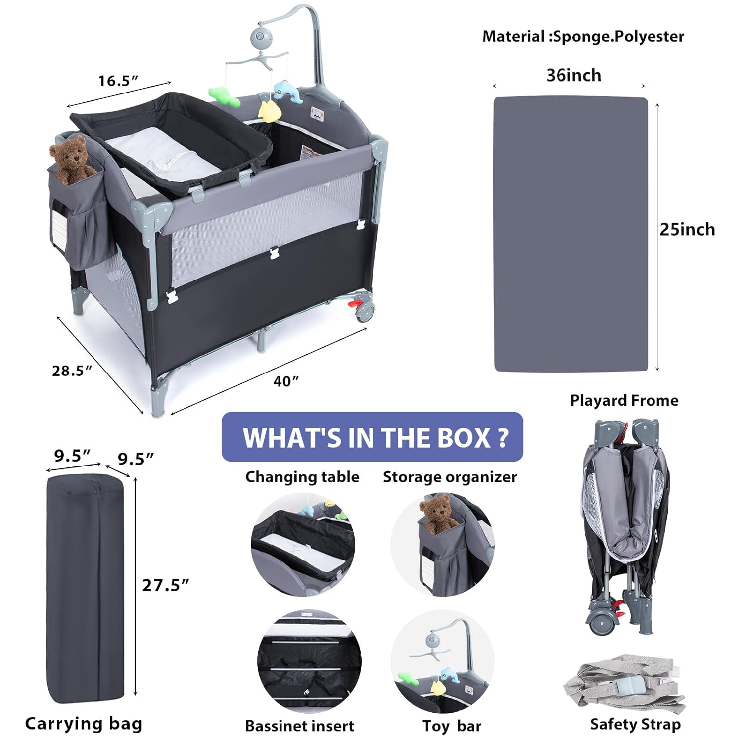5-in-1 Child Pack and Play Child Crib2-in-1 Child Playard & Bedside Bassinet7-point supporting construction on the underside comes with extra steadinessFor infants from 0-36 months