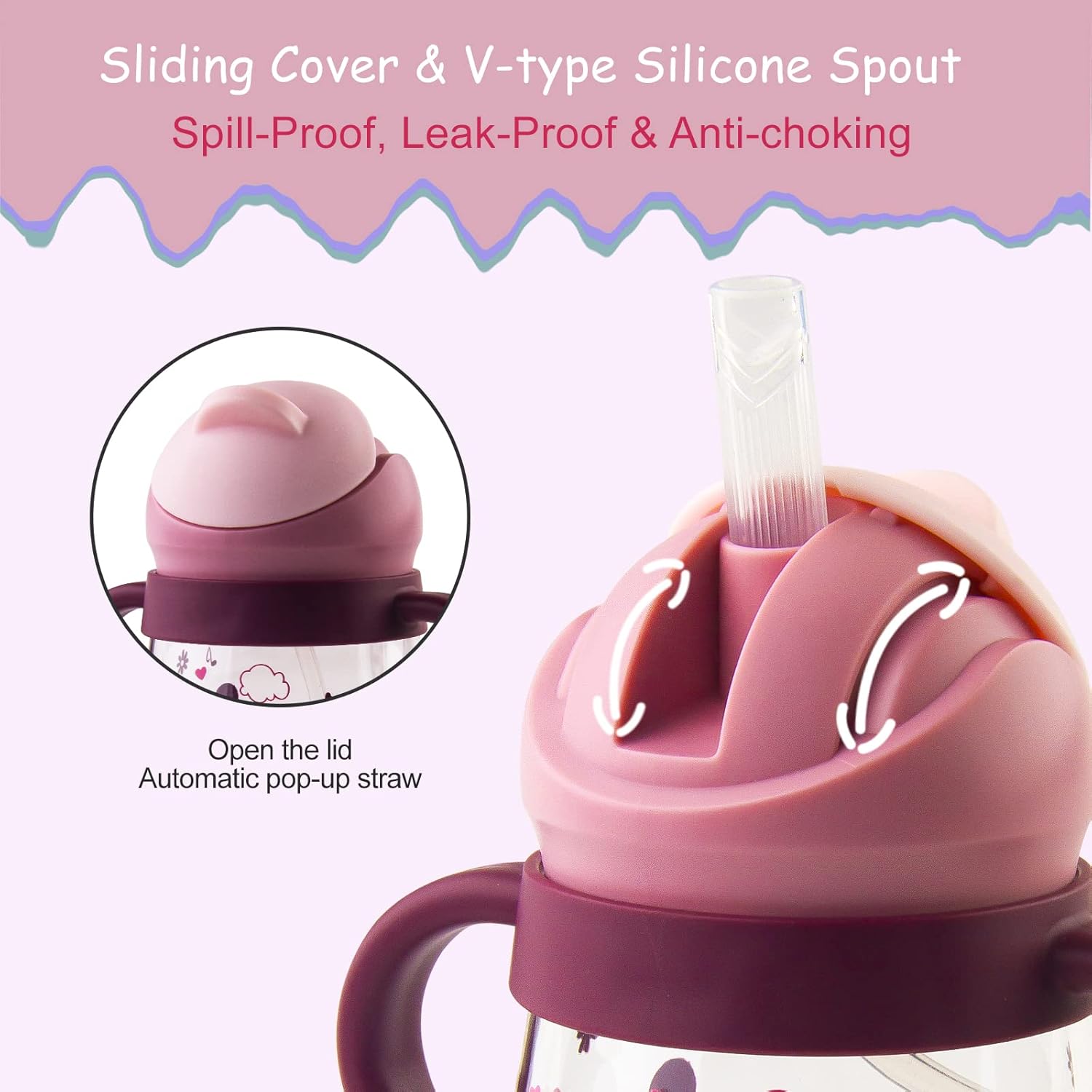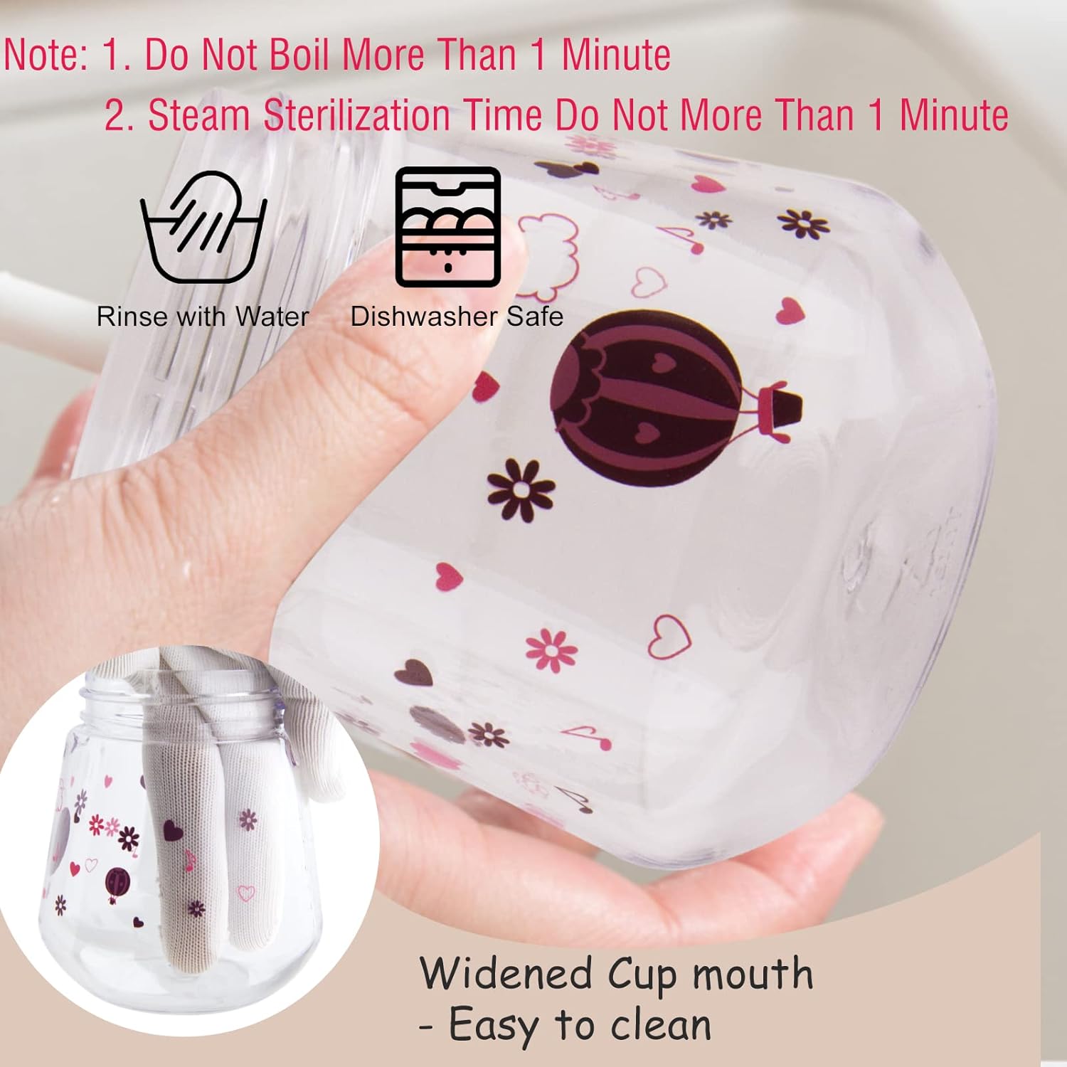 100% Meals Grade Materials: The child sippy cups comprised of Tritan Co-polyester plastic + smooth silicone+metal weighted ball, BPA-Free. The smooth silicone straw spout might be disinfected in boiled water or steam sterilized, it is light on delicate gums, resistant, versatile, won’t harm child’s mouth.