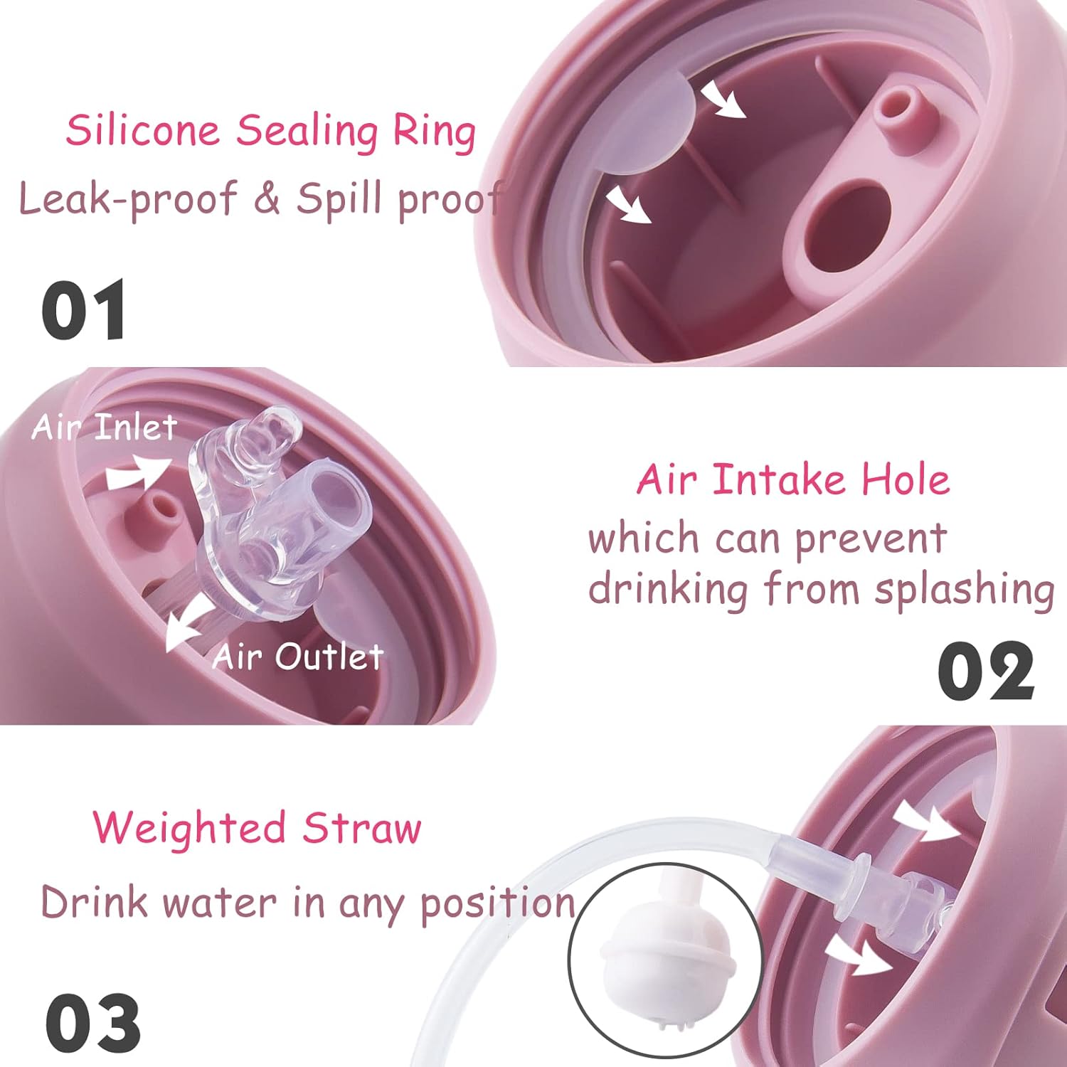 Particular design for Spill Proof: The straw cup with 2-way air inlet, guarantee no water spills even when the cup is turned over or shaken.