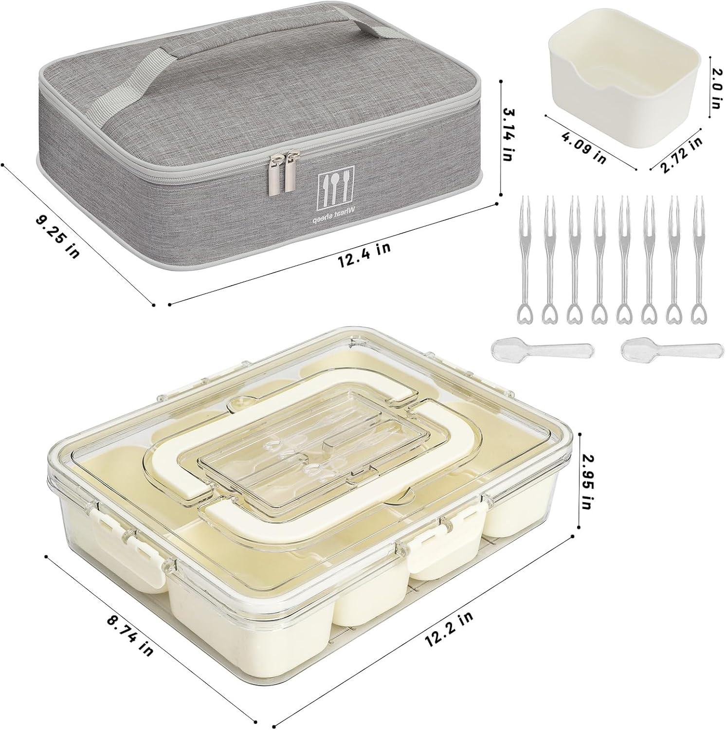PERFECT MATCH: The snack tray with compartments has 8 detachable compartments so you may retailer sweets, sushi, fruits and condiments based on your wants. The crumb-proof design prevents cheese chunks and nuts from mixing collectively. It consists of 8 forks and a couple of spoons for straightforward entry to meals on the go, and the cutlery compartments may be eliminated for straightforward altering of cutlery!