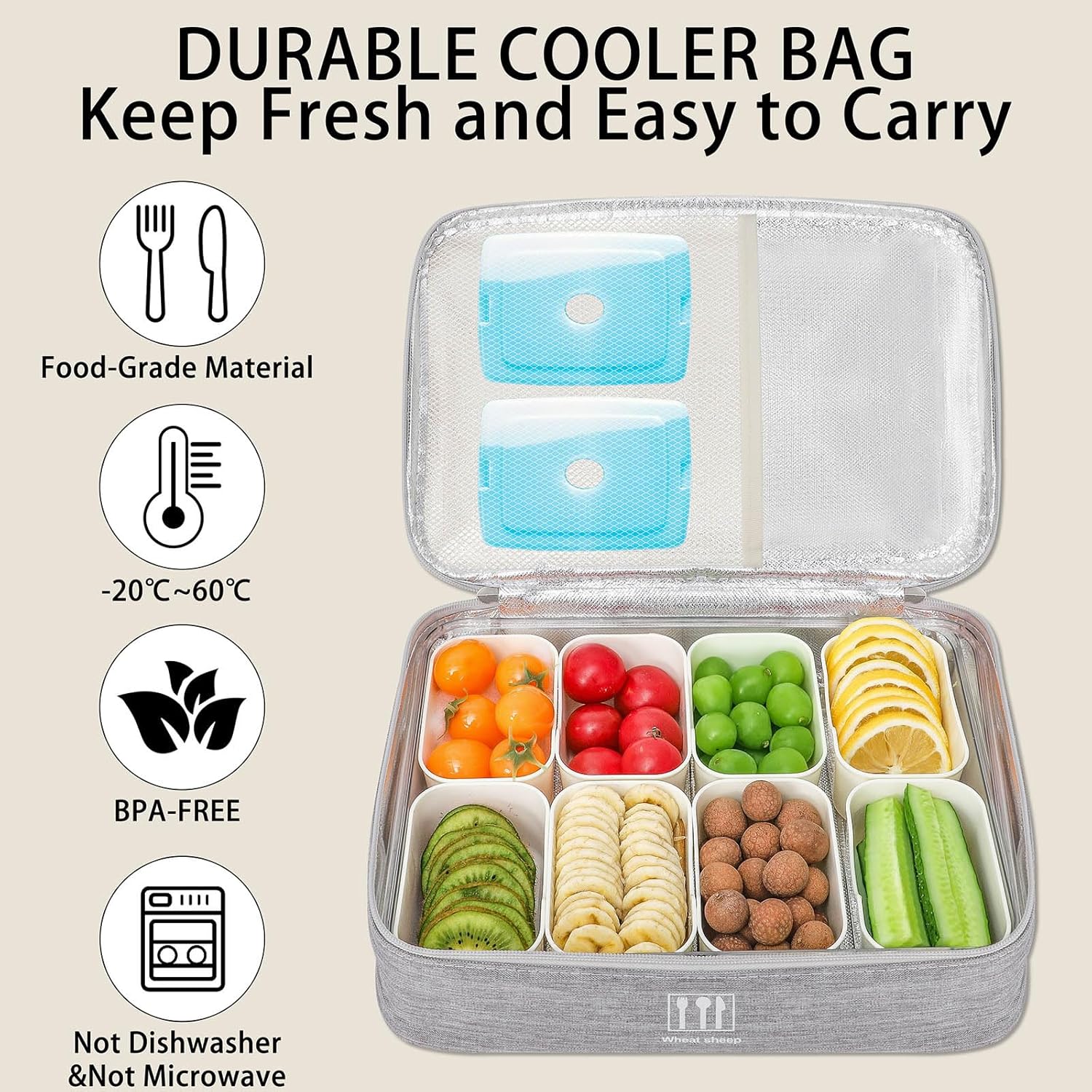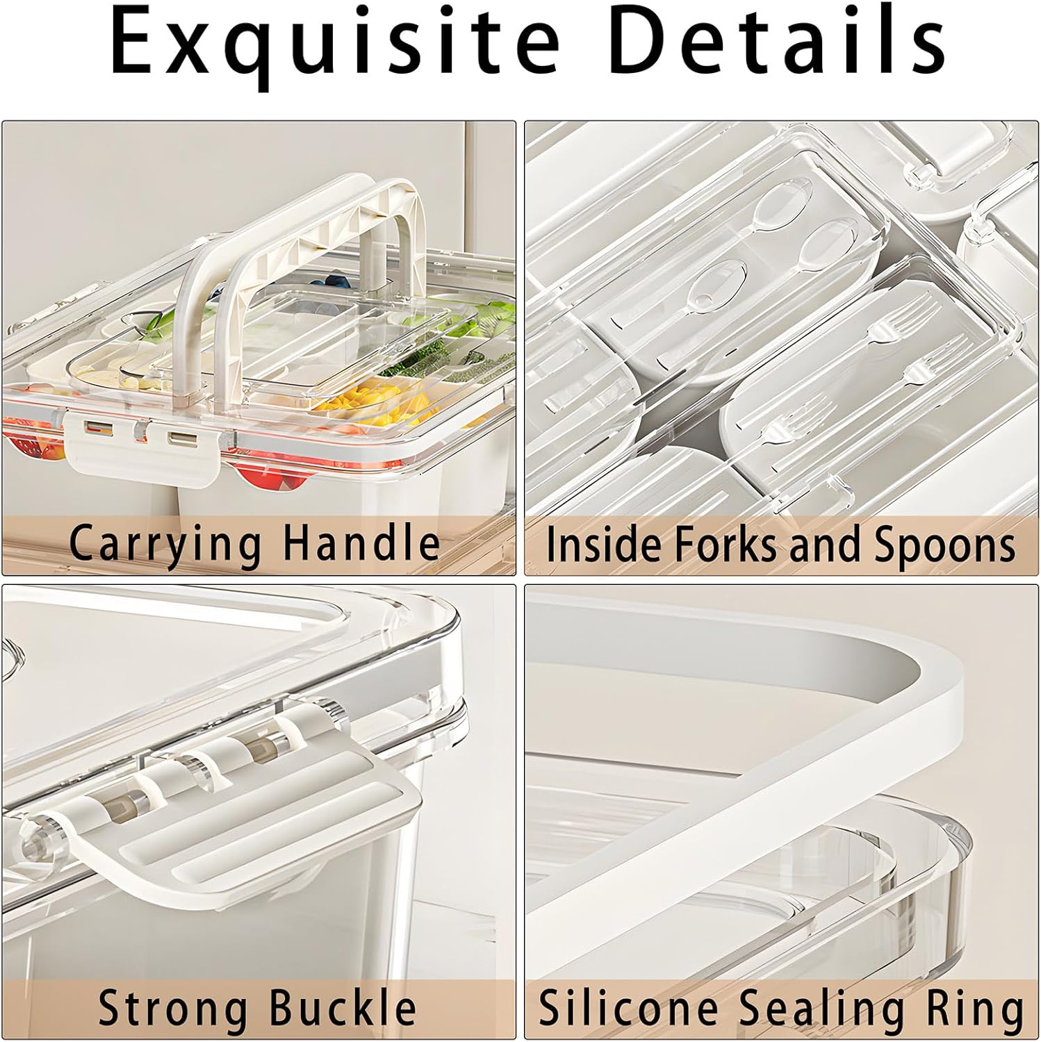 CONVENIENT & PORTABLE: The divided serving tray with lid container comes with a leak-proof lid and collapsible carrying deal with, hermetic silicone seal and robust snaps on all 4 sides, which may successfully forestall leakage, and comes with an insulated grocery bag so you may take it wherever tenting meals storage