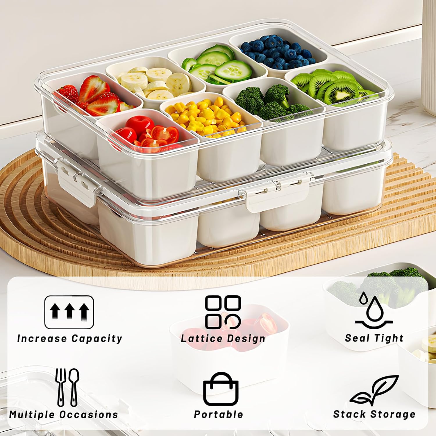 UNIQUE DESIGN: The snackle field charcuterie is designed with a hidden compartment for utensils, which can be utilized to retailer utensils and save area. It contains a detachable design, is straightforward to scrub, and has 8 particular person compartments with groove design for straightforward entry. The moveable charcuterie board has a concave and convex crossbar design on the underside, making it not straightforward to slip off