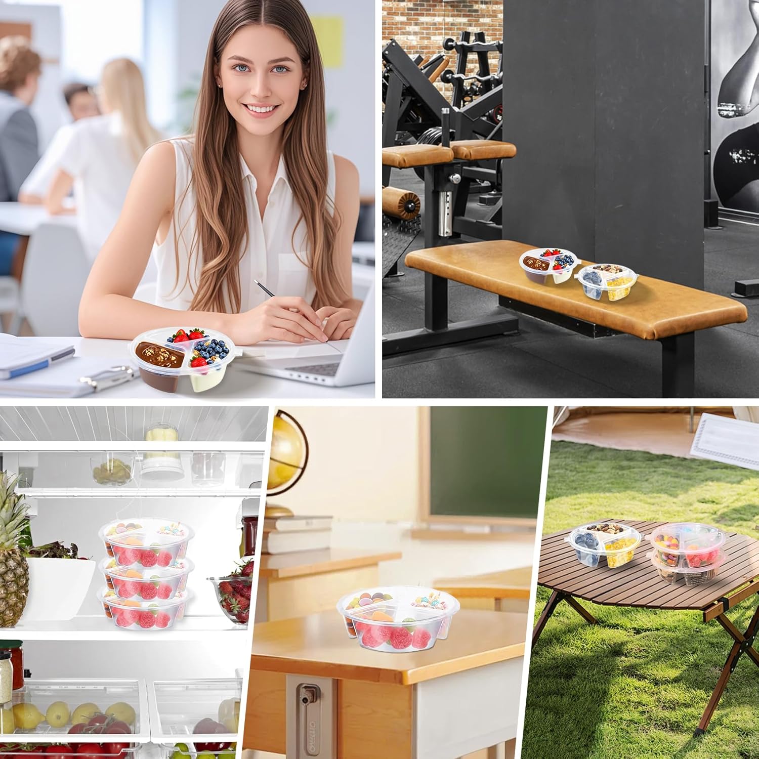 50 Pack – Contains 50 reusable 3-compartment snack containers with lids, ultimate for organizing varied meals parts. good for separating fruits, sauces, nuts, crackers, and extra. Best for meal prep, snacks, or on-the-go meals.