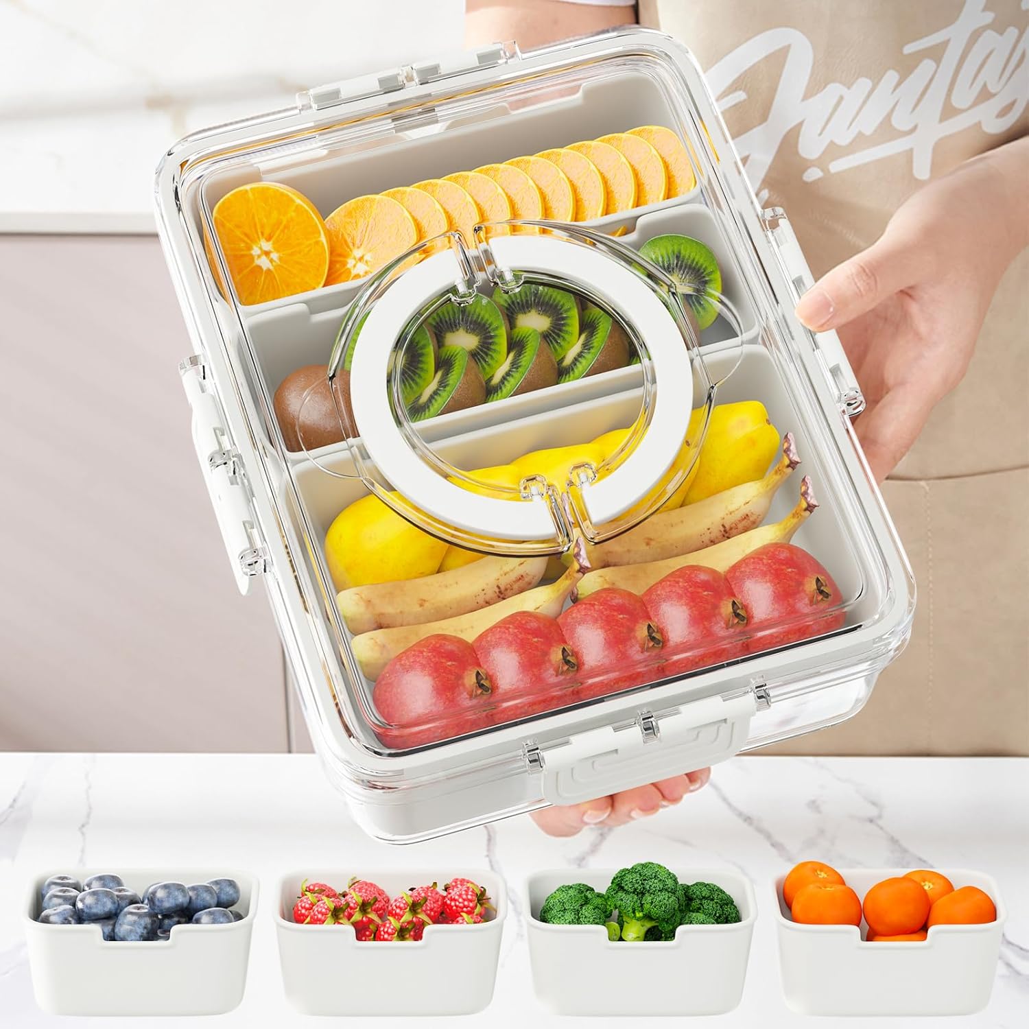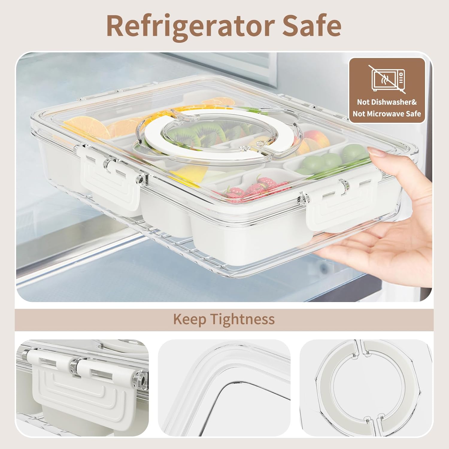 Versatile Snack Tray for Numerous Makes use of:Expertise true versatility with this snack field container. Past a easy snack tray, it effortlessly transforms right into a fruit platter, a spice organizer, or a conveyable get together tray. The secure-fitting lid makes this snack tray with lid your important companion for journey, tenting, workplaces, and residential gatherings