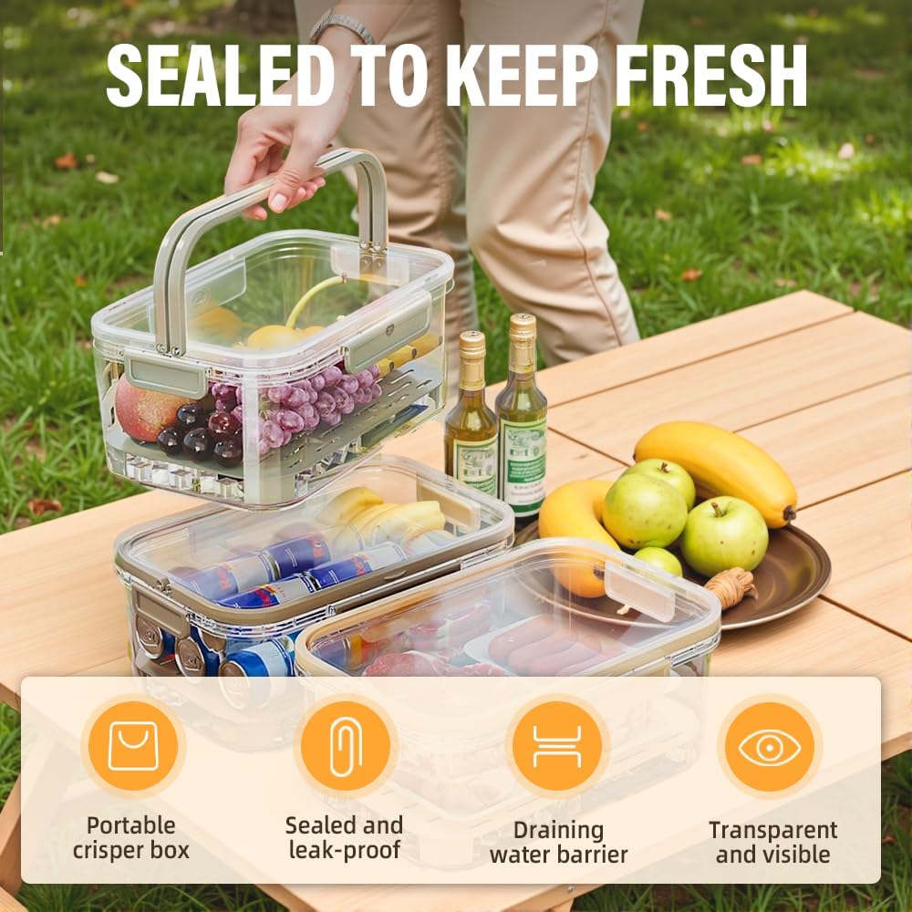 🧊No further steps are required, simply put the ice pack in and you should use the snack tray with ice pack. Open the lid to kind fruits, snacks, and drinks, elevate the deal with to simply set off, and the aged and kids can even function it simply.