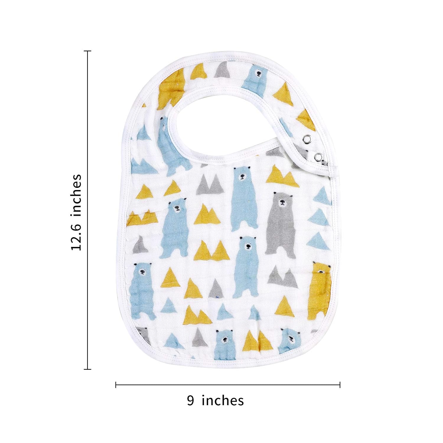 【Tremendous Absorbant Drool Bibs】- Extremely absorbent with 3 layers of sentimental muslin cotton; catch and take in liquid, hold garments and pores and skin dry from spills, spit-ups, teething and drooling.