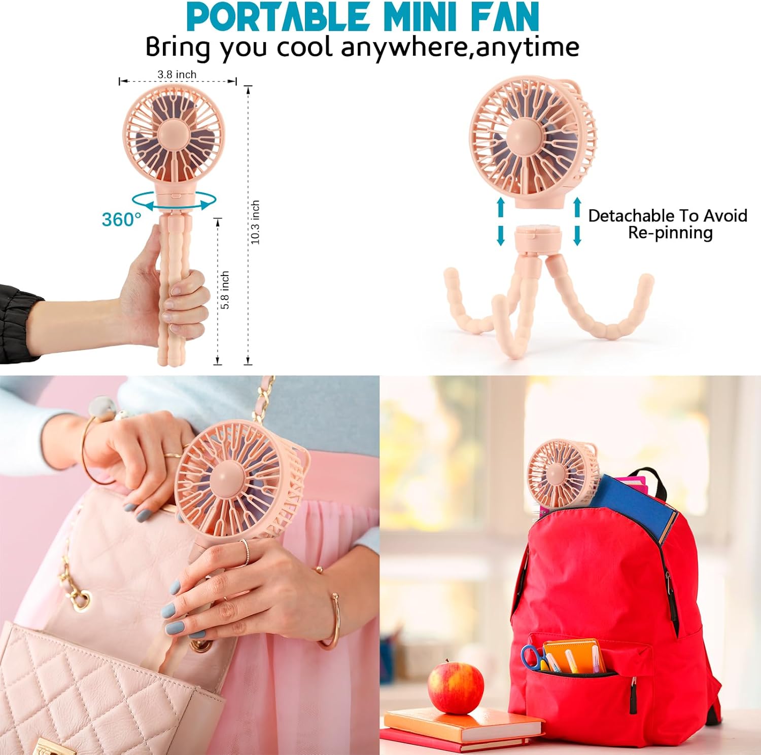 【Upgraded Versatile Unbreakable Tripod】There are fixing screws contained in the connection between the small fan and the tripod to make sure sturdiness and never fall off. We used food-grade silicone, so you do not have to fret concerning the child consuming it by mistake