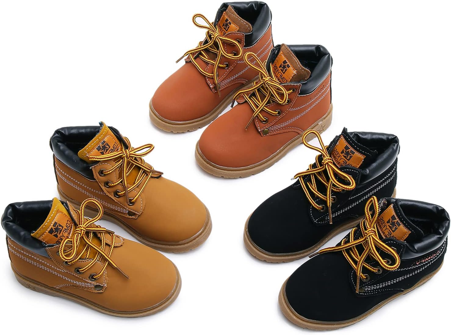 SOFMUO Baby Kids Boots – Boys Girls Rubber Sole PU Leather Warm Winter Shoes Hiking Snow Ankle Boots Toddler/Little Kid