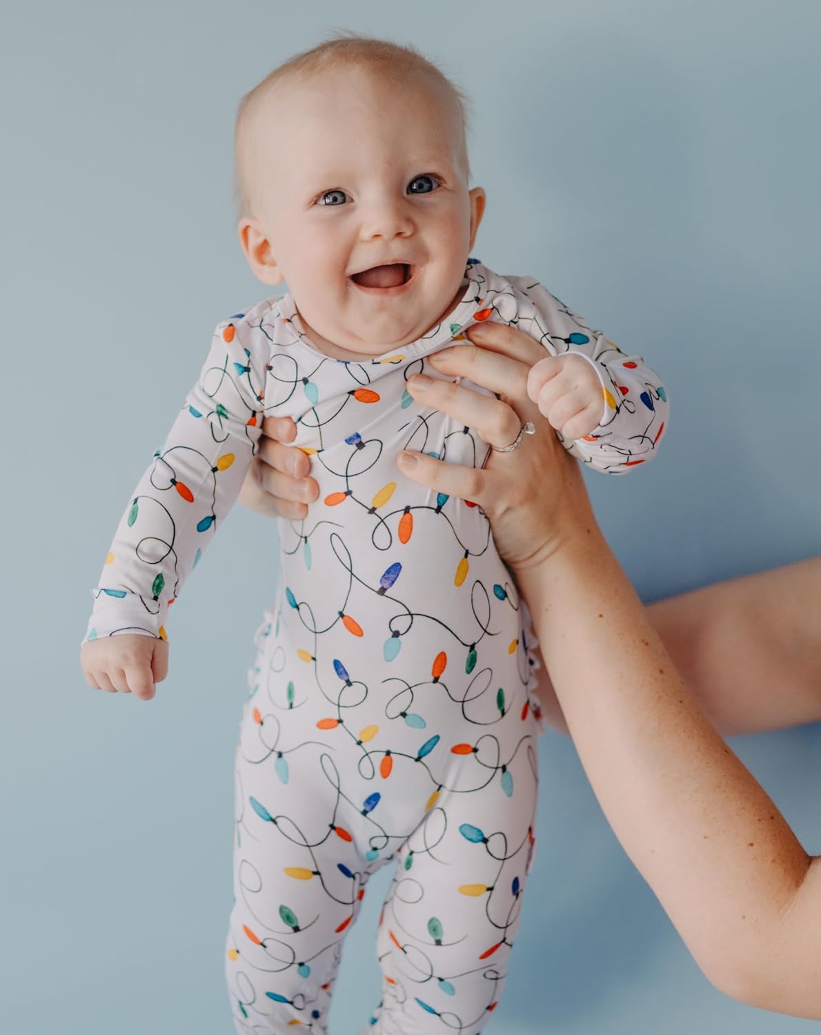 Soft Bamboo Viscose Baby Romper – Christmas Collection – Lightweight, Pacifier Clip, Inseam Zipper
