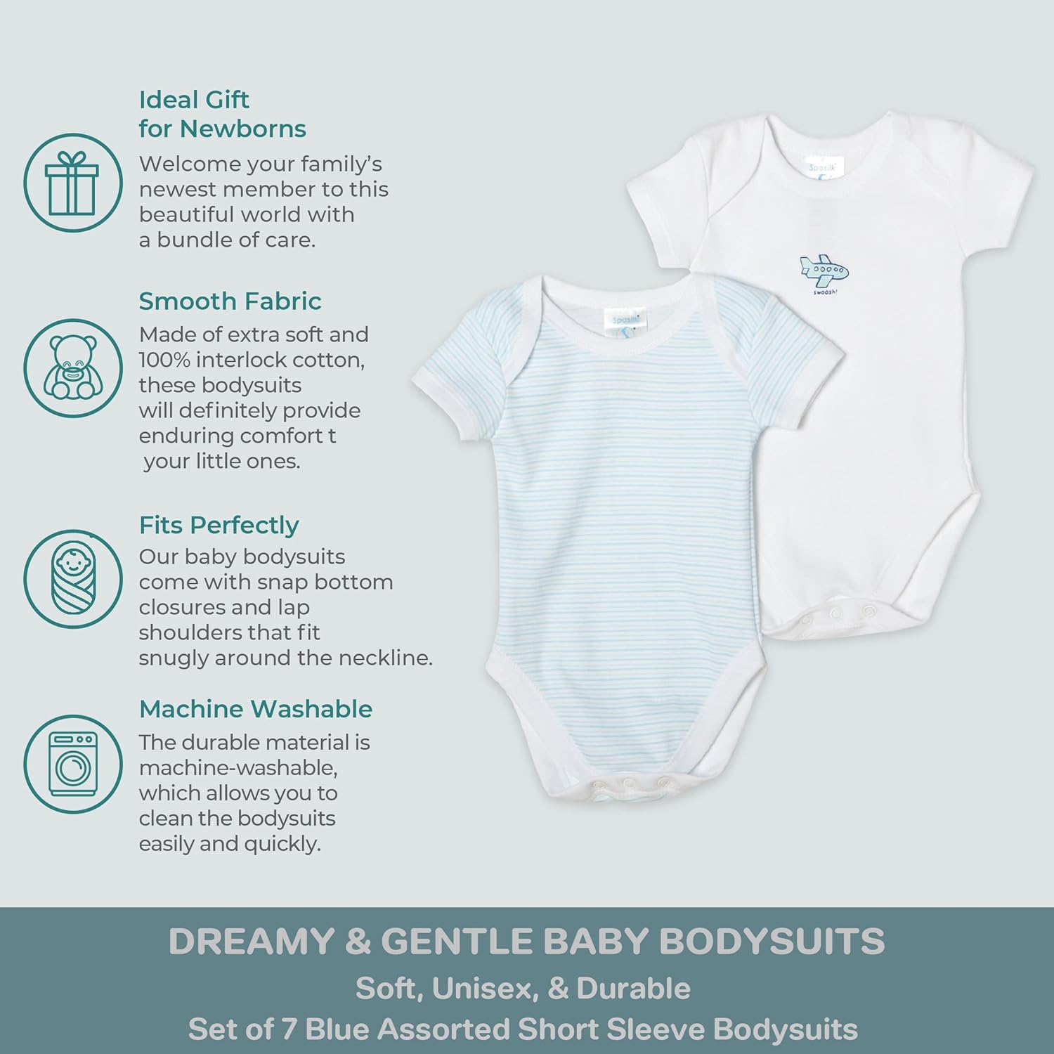 Spasilk 100% Cotton Assorted Short Sleeve Lap Shoulder 7-Pack Bodysuit