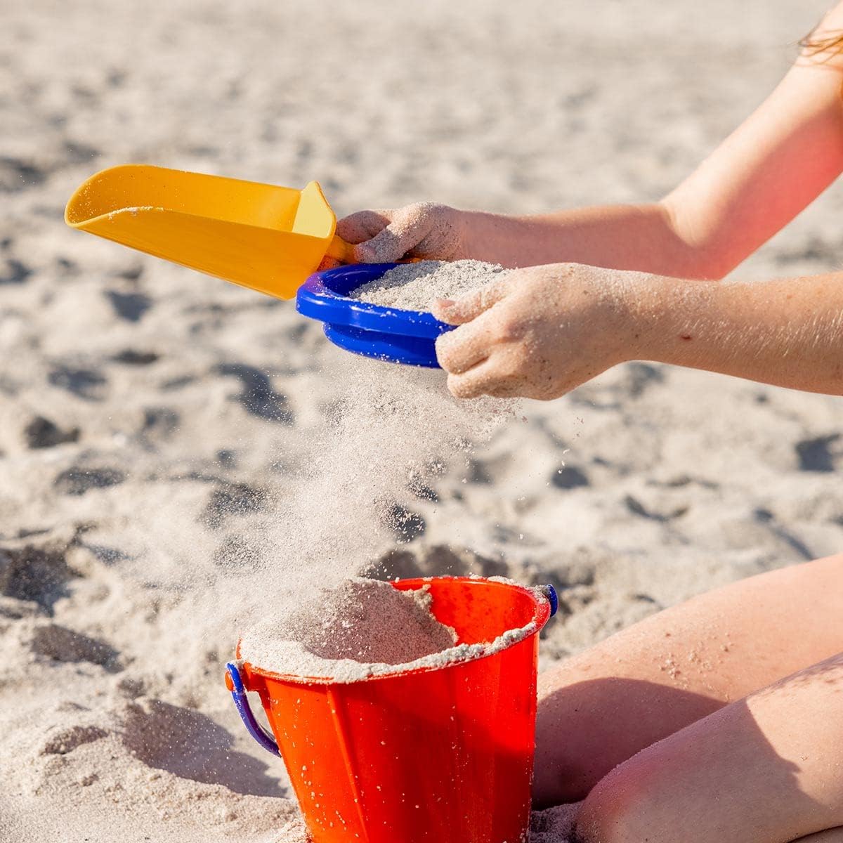 Please word: Colours differ! 4 piece set will embrace a minimum of 3 completely different colours. The pail might ship in crimson, yellow or inexperienced and the sieve and scoops will ship in both crimson, blue or yellow.