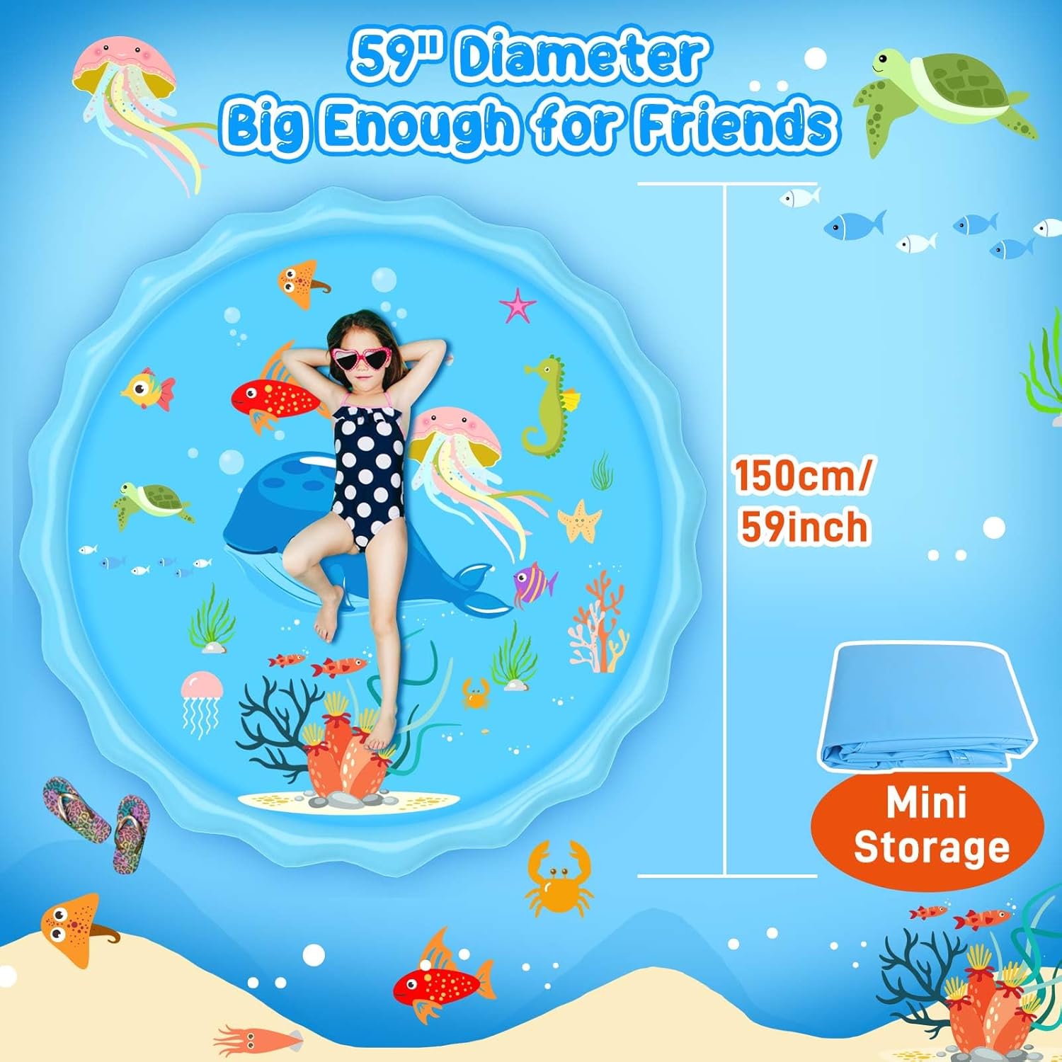 59″ Household-Measurement Water Pad: This massive splash pad comfortably suits 2 to three toddlers without delay—excellent for siblings, yard water events, or household bonding. Toddler splash pad turns your yard right into a 24/7 non-public water park, making each summer season day really feel like a trip.