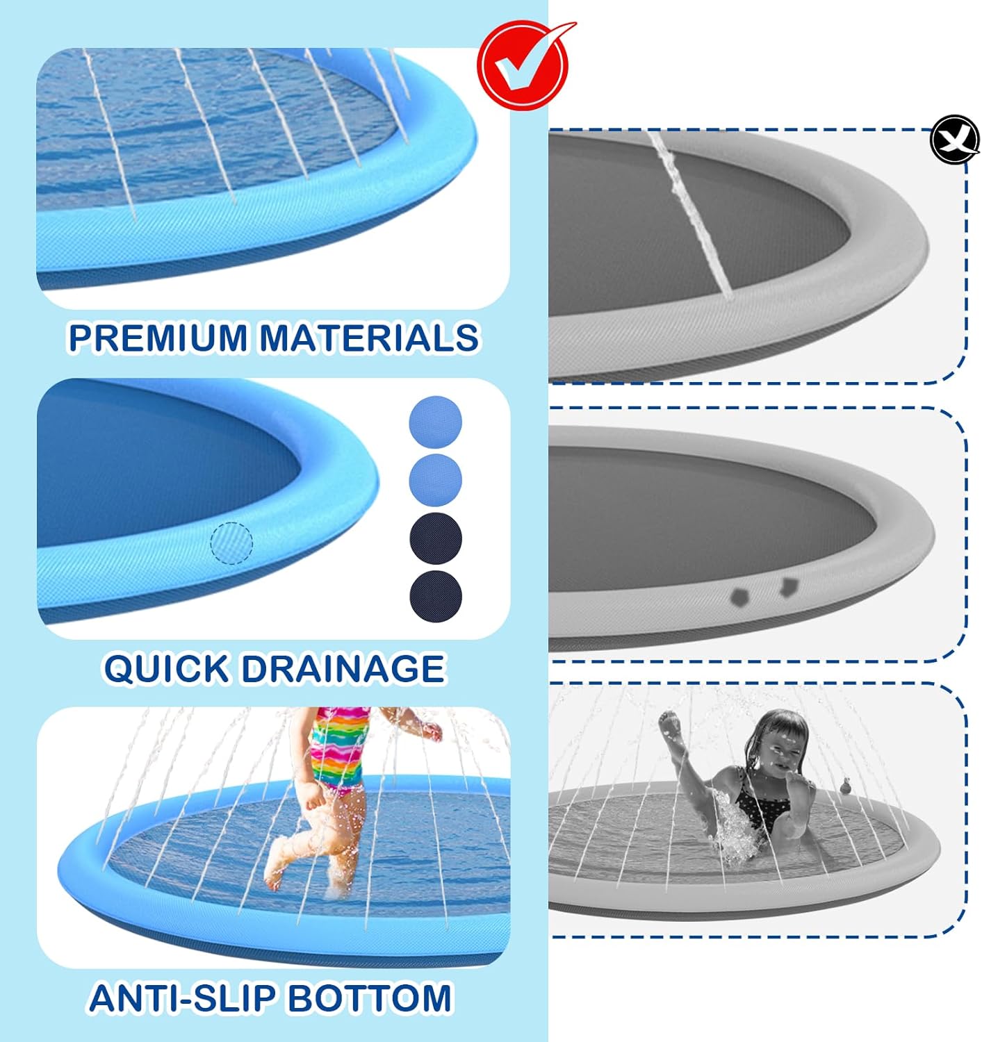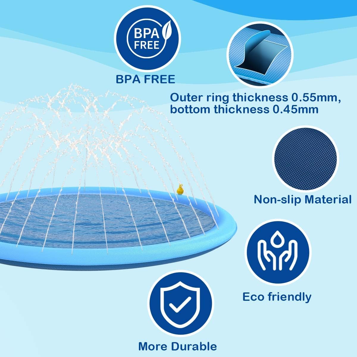 Secure and Sturdy Materials: Your toddler’s security is our high precedence, this water sprinkler pad for teenagers and canine is product of environmental PVC materials, non-slip from BPA and phthalates, protected for each day use, 0.45mm thickness is 30% thicker than different splash pad, top quality edge sealing expertise makes it not straightforward to burst