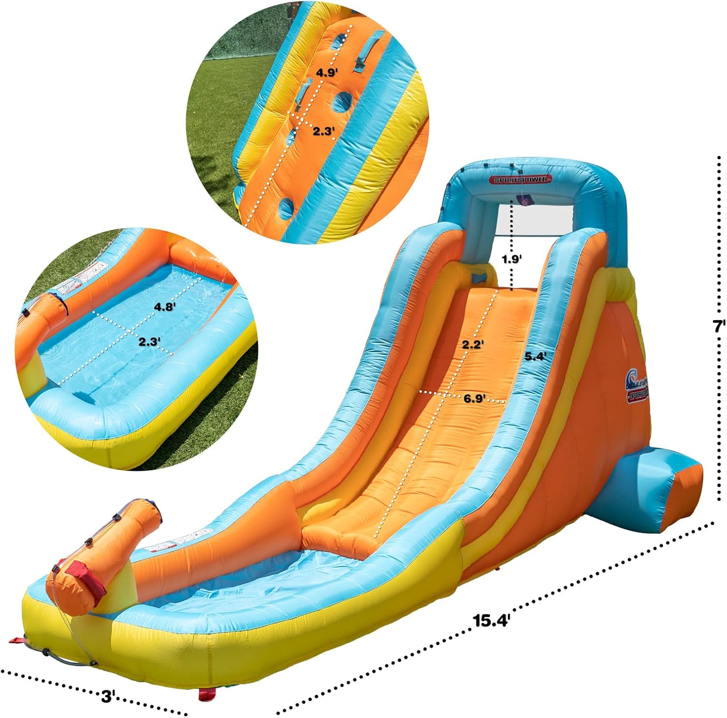 WATER SLIDE FUN – Encompasses a 7′ water slide, splash pool, and built-in water cannon for action-packed yard play