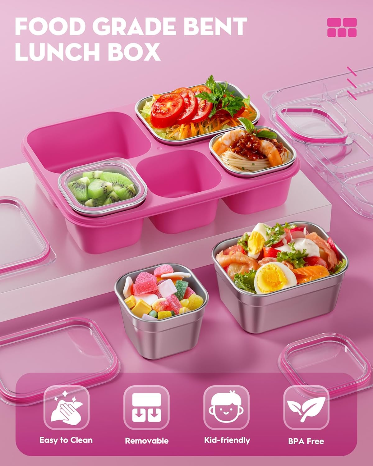 Variety of Containers: 5 Detachable Stainless Metal Snack Boxe