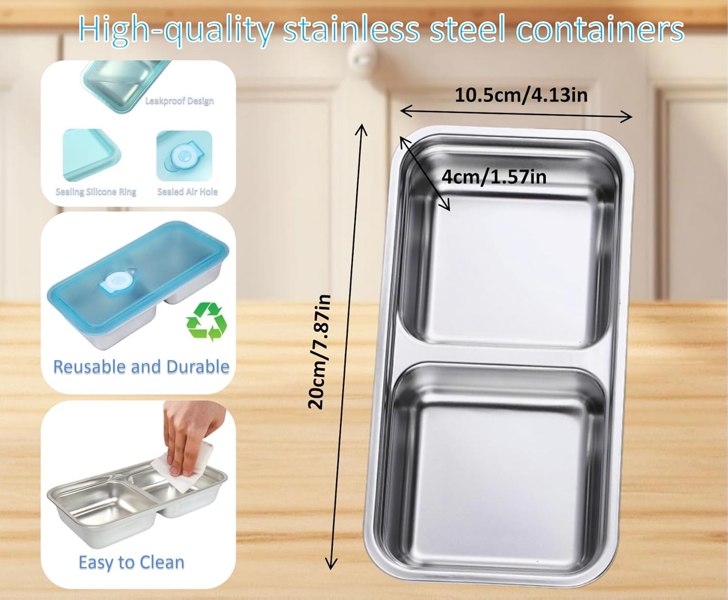 【 Double-compartment Snack Field Design 】 The stainless-steel snack packing containers characteristic a double-compartment design, stop flavors from mixing, preserving taste and freshness.Designed with leak-proof lids, these snack containers guarantee no spills or messes,appropriate for storing varied objects similar to aspect dishes, sauces, snacks, fruits, salad dressings, and so forth.