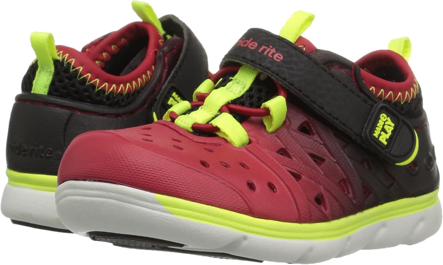 The made 2 play phibian is a cross between a shoe and a sandal. Fast dry higher, machine cleanable, safe closure, and rubber on the outsole.