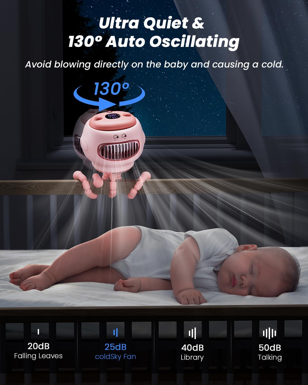 【𝗪𝗵𝗶𝘀𝗽𝗲𝗿-𝗤𝘂𝗶𝗲𝘁 𝗢𝗽𝗲𝗿𝗮𝘁𝗶𝗼𝗻】coldSky child stroller fan utilizing superior noise discount expertise, our child stroller fan operates at a whisper-quiet degree as little as 25 decibels. It creates a just about noiseless surroundings, permitting your child to sleep peacefully all through the night time.