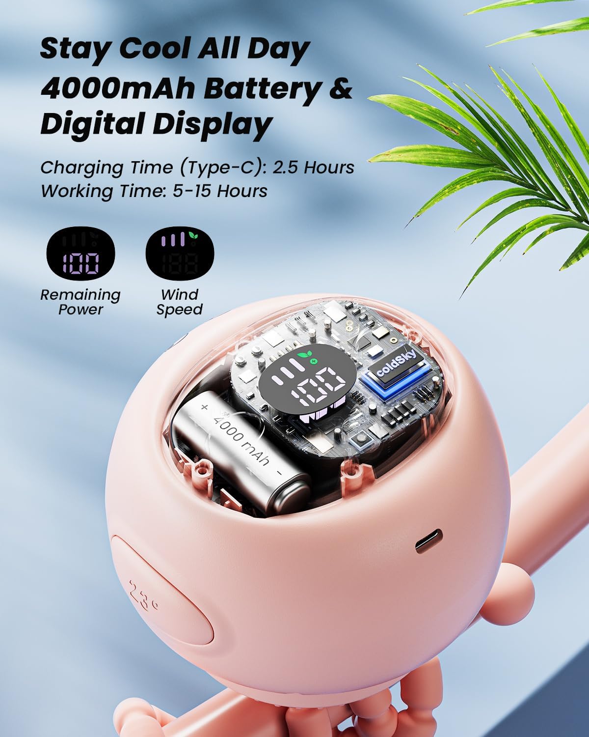 𝟭𝟲𝗛𝗿𝘀 𝗠𝗮𝘅 𝗖𝗼𝗼𝗹𝗶𝗻𝗴 𝗧𝗶𝗺𝗲 & 𝟰 𝗦𝗽𝗲𝗲𝗱𝘀】Battery operated fan outfitted with a high-capacity rechargeable 4000mAh battery, 4 Adjustable Wind Speeds, it gives long-lasting utilization of 6-14 hours, decreasing the necessity for frequent charging and guaranteeing comfort in your every day routine. It additionally incorporates a 𝗗𝗶𝗴𝗶𝘁𝗮𝗹 𝗗𝗶𝘀𝗽𝗹𝗮𝘆 that exhibits remaining battery life and fan velocity ranges in real-time.