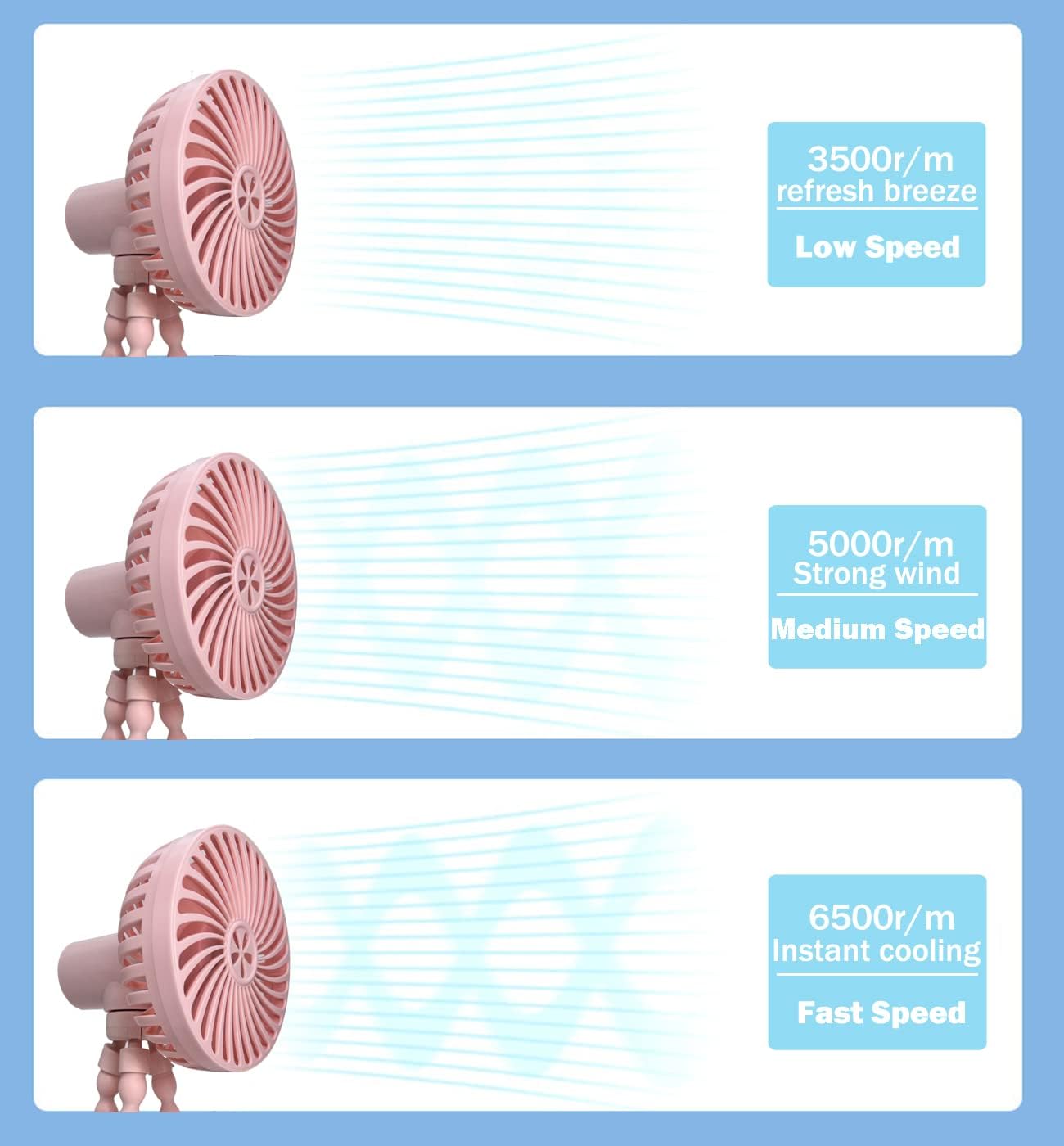 【Highly effective However Quiet】Outfitted with aerodynamically upgraded brushless motor,the infant stroller fan affords a chronic service life and steady work efficiency.Simply get pleasure from highly effective airflow with out the disturbance of annoying noise whether or not you are working, enjoyable, or your child is peacefully asleep.You may effortlessly swap between 3 sort wind speeds with the comfort of a single button.