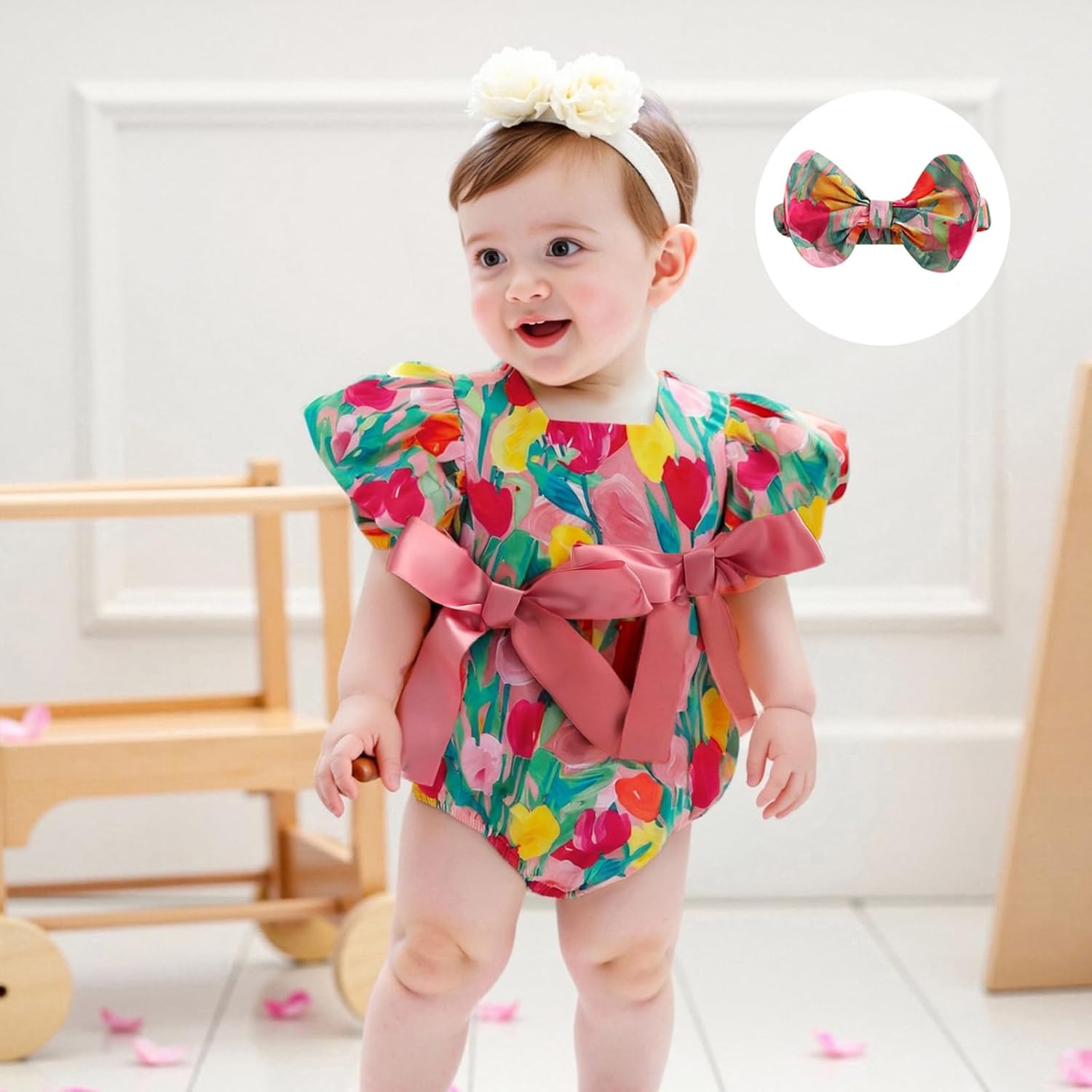 Summer Outfit Toddler Baby Girl Dress Tulip Bow Puff Short Sleeve Dresses Tunic Dress Summer Sundress Girls Casual Dress