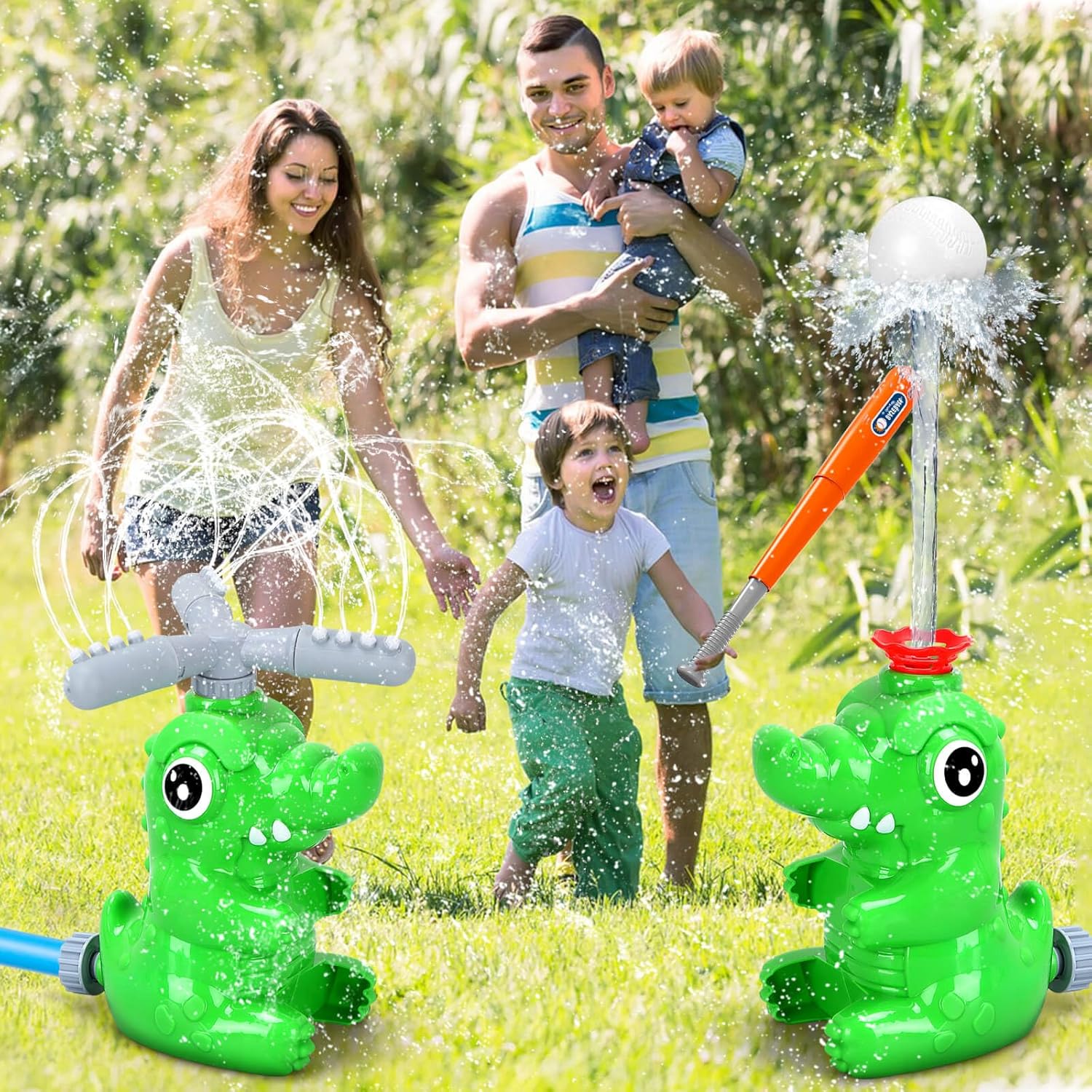 Twin – Sprinkler Head Enjoyable: Comes with 2 replaceable sprinkler heads. One is a water – column nozzle for baseball play. The opposite is a 360° rotating nozzle for a large – space spray, providing various water – play choices