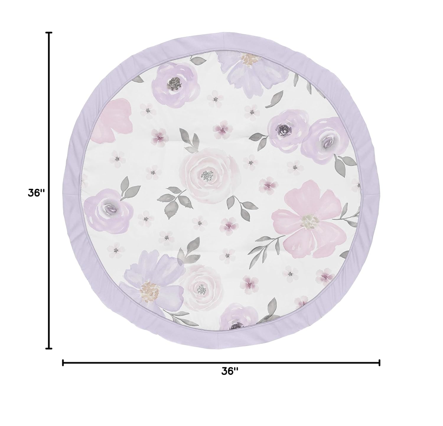 Playmat is designed utilizing a lavender purple, pink and gray watercolor floral print and completed with lavender purple piping and border – Brushed Microfiber
