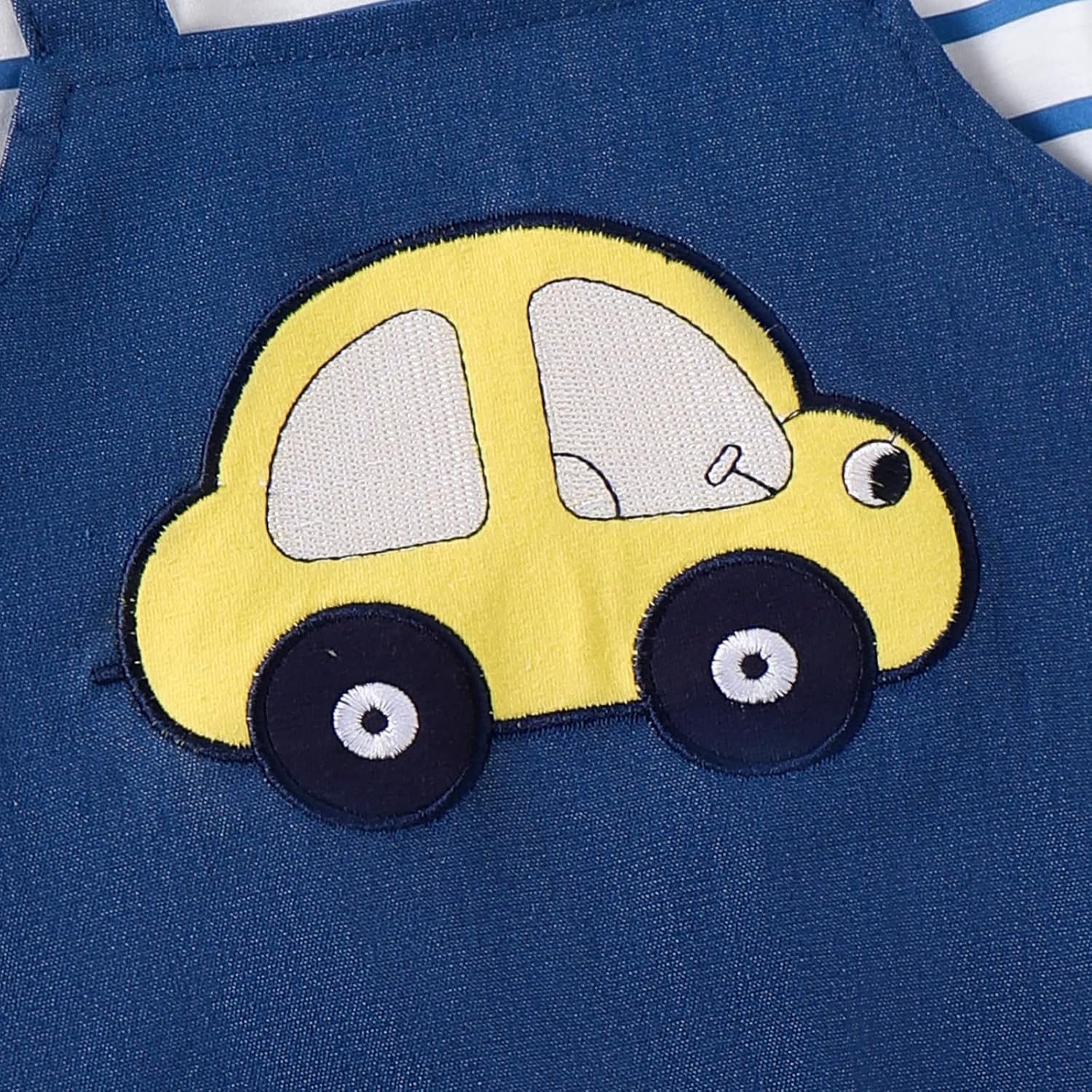 Tempura Baby Boy Short Sleeve Romper Round Neck Striped Car Fake Jumpsuit Infant Summer Clothes