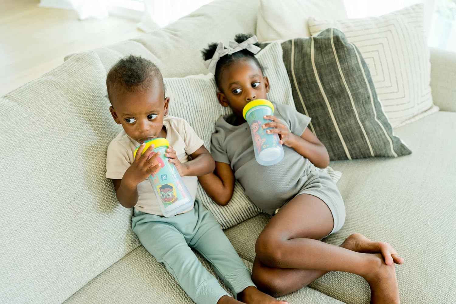 Toddler Powerful: Every of those Cocomelon toddler cups options the break-resistant DropGuard bumper to guard the sippy cup lid if (or let’s be actual) when your toddler drops it
