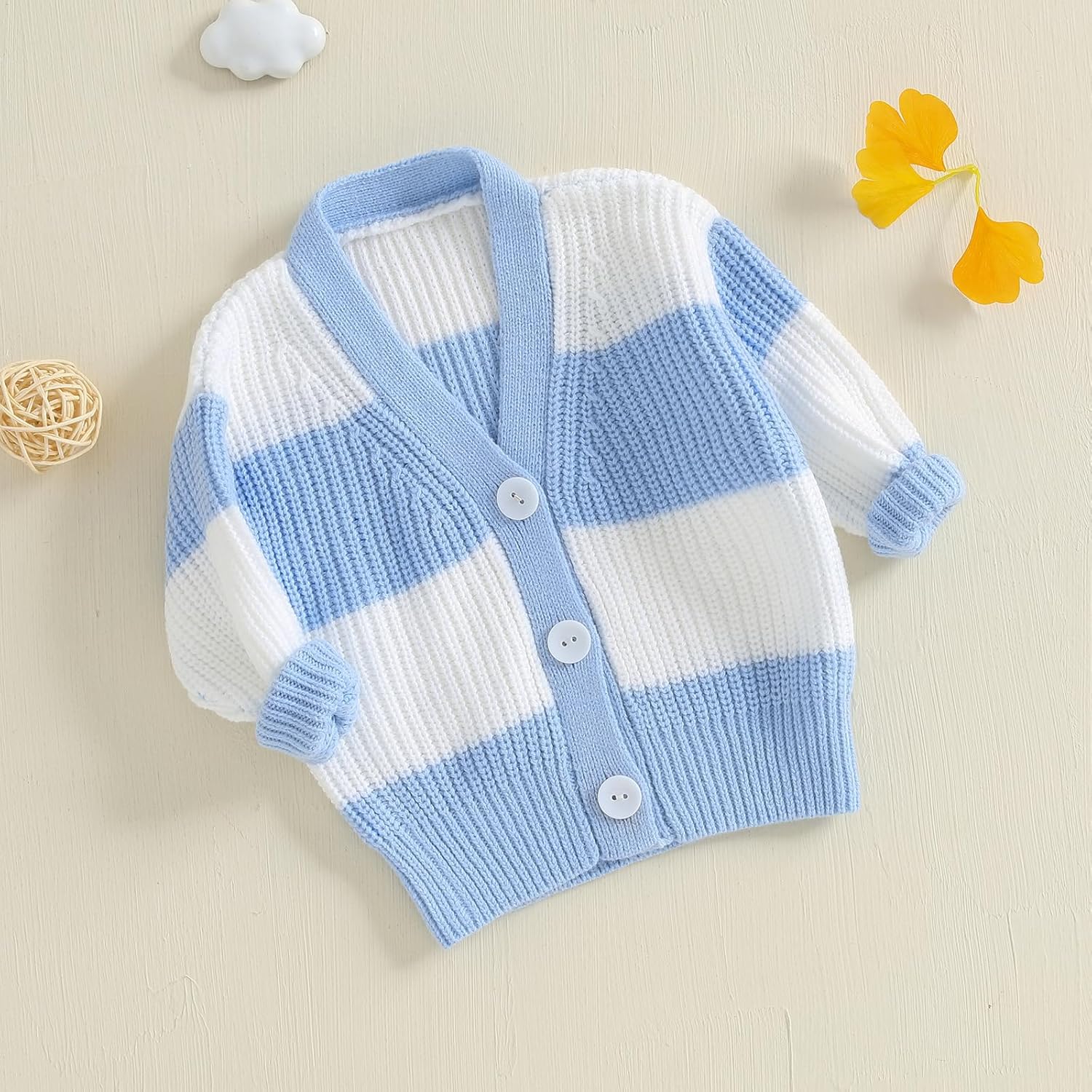 Toddler Baby Girl Boy Knit Sweater Cardigan V Neck Color Block Button Up Sweaters Fall Winter Clothes