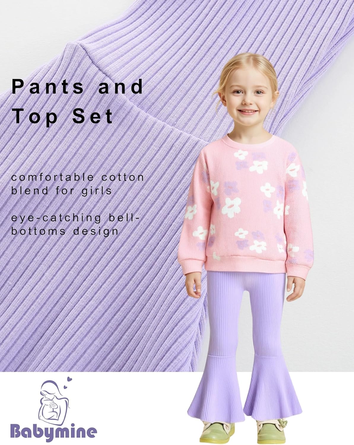 Toddler Baby Girl Clothes Long Sleeve Crewneck Sweatshirt with Bell Bottom Pants Spring Fall Winter Outfits