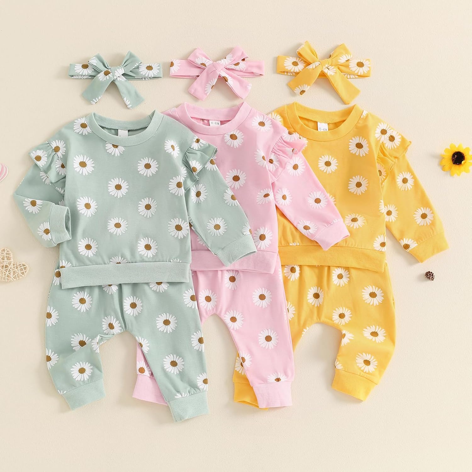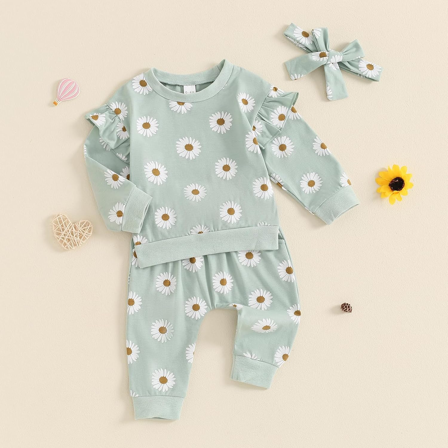 Toddler Baby Girl Clothes Long Sleeve Floral Sweatshirt Top Pants Infant Fall Winter Clothes 6 12 18 24 Months 2T