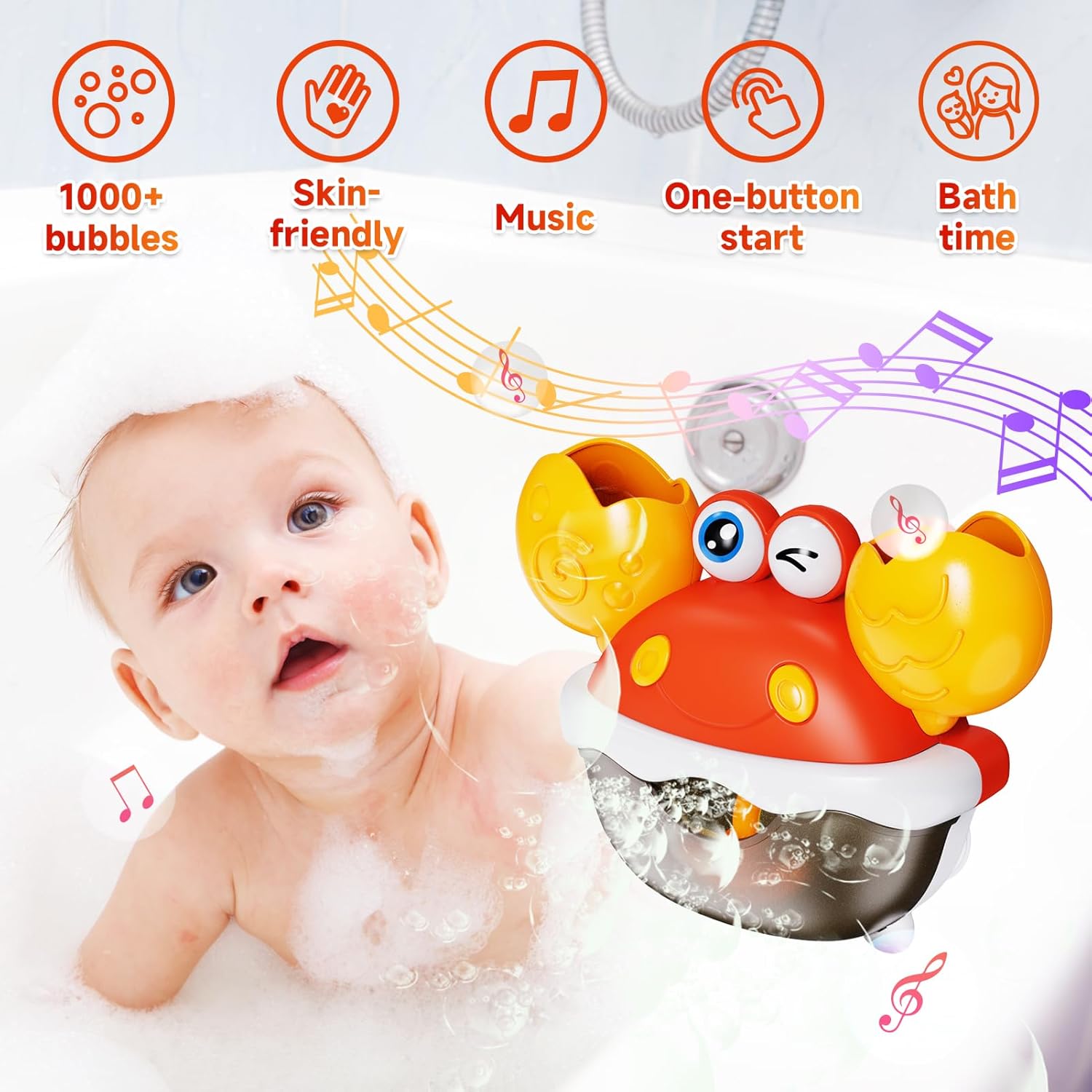 【New Child Bathtub Toys】Our child bathtub toys don’t have to be disassembled to fill with water, handy and quick, solely want bathe gel and water, the lovable bubble crab bathtub toys will spit out numerous bubbles, accompanied by music, in order that the child can benefit from the bathtub time whereas taking a shower, in order that the child will like to take a shower.