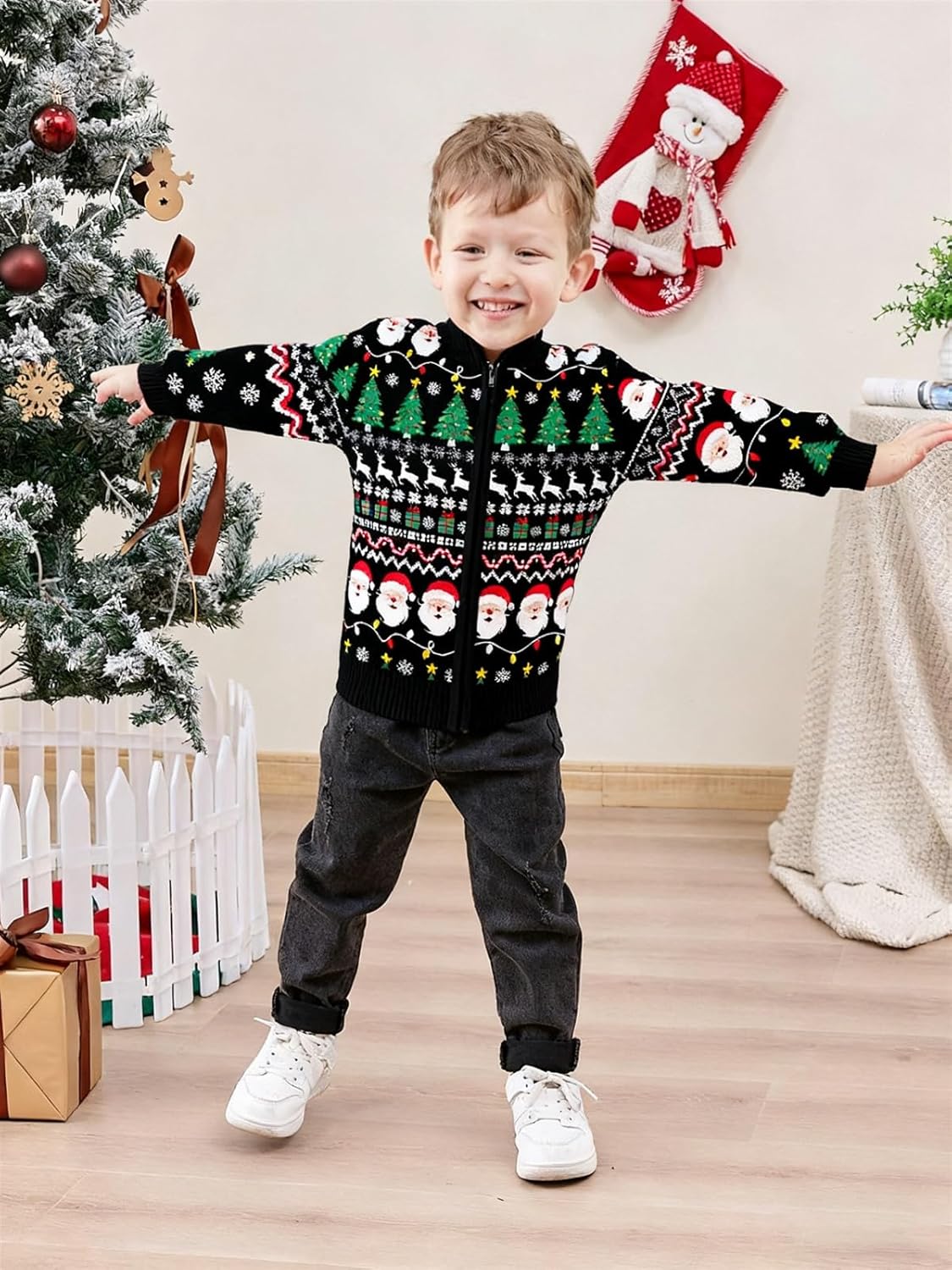 Toddler Christmas Sweater Zip Up Knitted Cardigan Lengthy Sleeve Reindeer Outfit