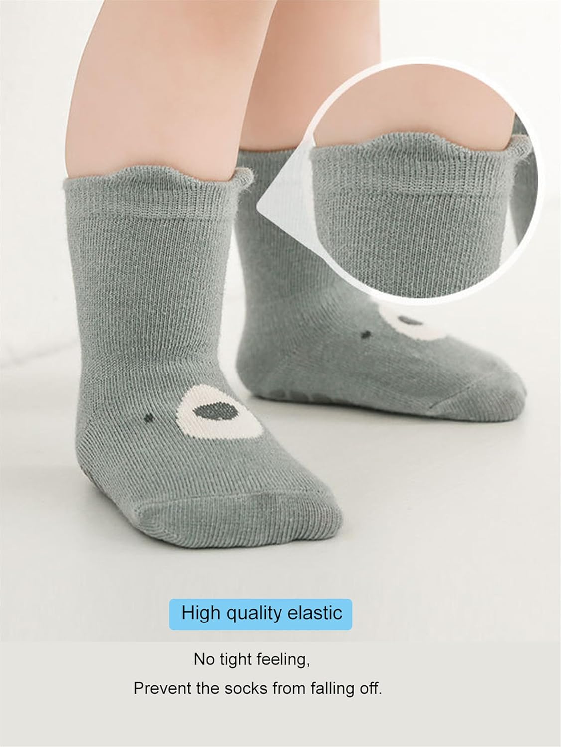 Toddler Non-Skid Socks with Grips Child Ladies Boys Anti-Slip Crew Cartoon Socks for Infants