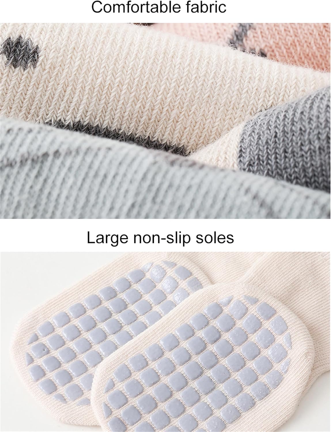 Anti slip toddler socks are beaded with Robust non-slip rubber grips which cowl the entire foot from heel to toe. Giant space anti-skid grippers present nice traction to maintain your child protected. Particularly excellent for infants who be taught strolling or crawling.