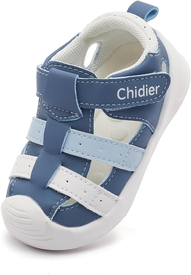 Toddler Sandals Soft PU Leather Closed Wide toe Casual Comfortable Summer Shoes for Baby Boys Girls Breathable Non-slip Little Kids Walking Shoes