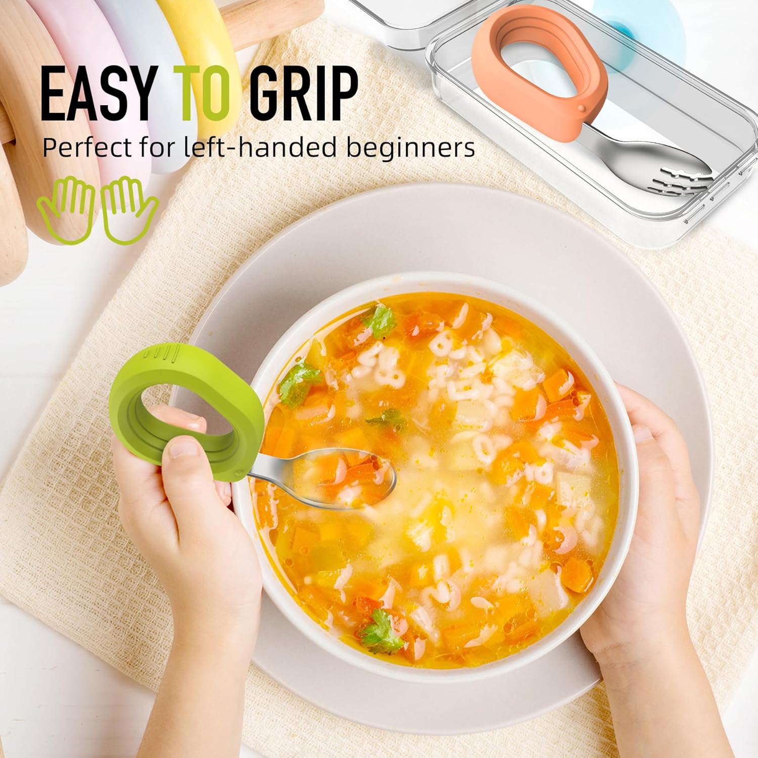 Toddler Utensils Set – Secure, Sturdy Stainless Metal & Silicone Child Utensils for Self-Feeding, Easy & Rounded for Delicate Mouths