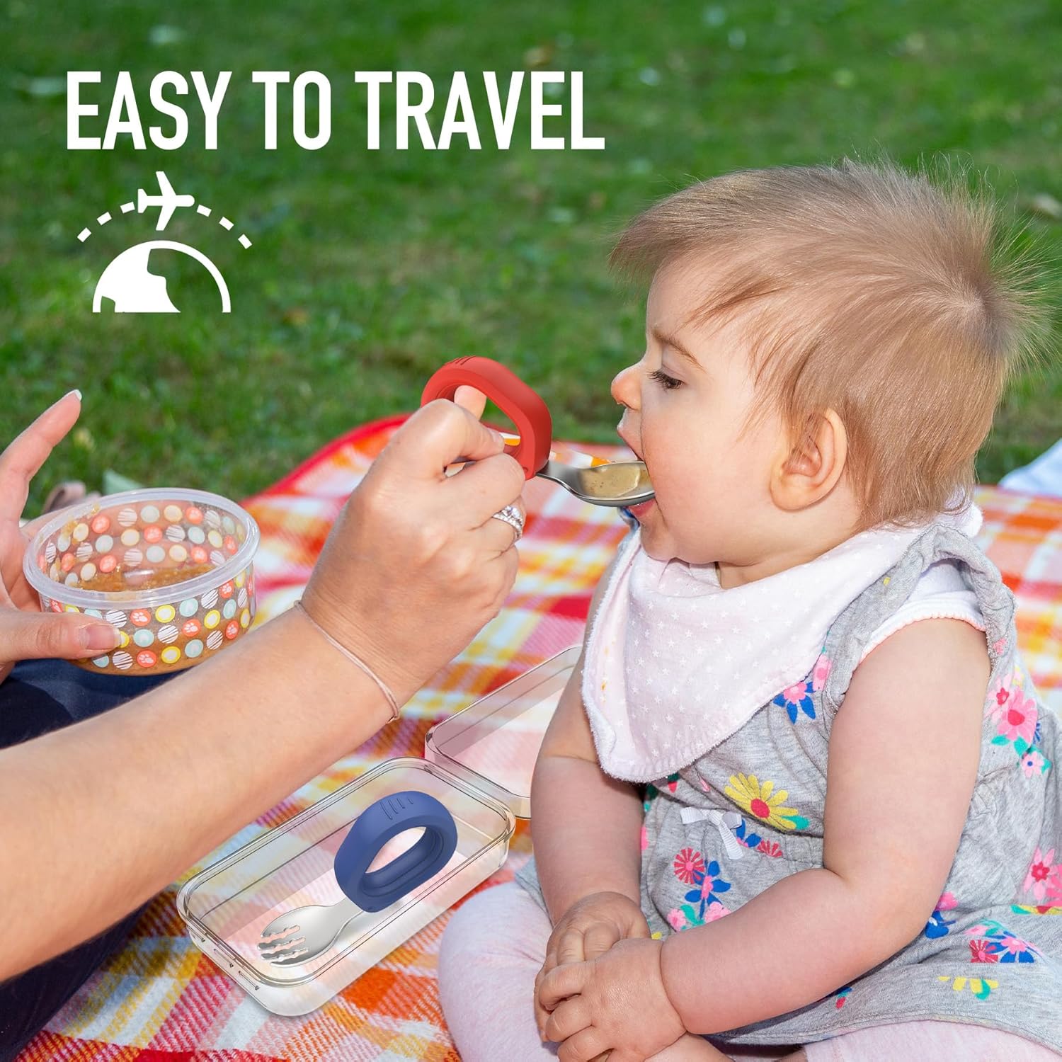 Our chrome steel toddler fork and spoon makes feeding easy. Sturdy, secure, and excellent for toddler soup, fruits, and tender solids.
