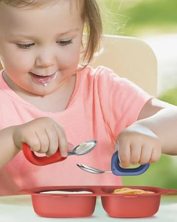 Our spoon for toddlers 1-3 helps little ones grasp self-feeding. Ergonomic loop handles make every chunk simpler and extra enjoyable to study.
