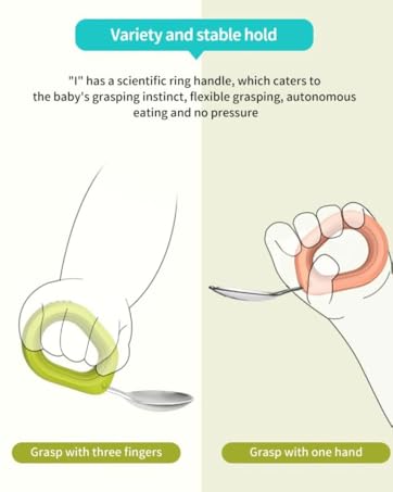 [Hollow handle design for stable grip] The infant Utensil has a hole ring deal with that matches the place a child makes a fist. It is fabricated from versatile food-grade silicone that is secure to chew, and when consuming, child can seize the tender deal with with one hand or put a finger into the loop, making it simple for child to eat.
