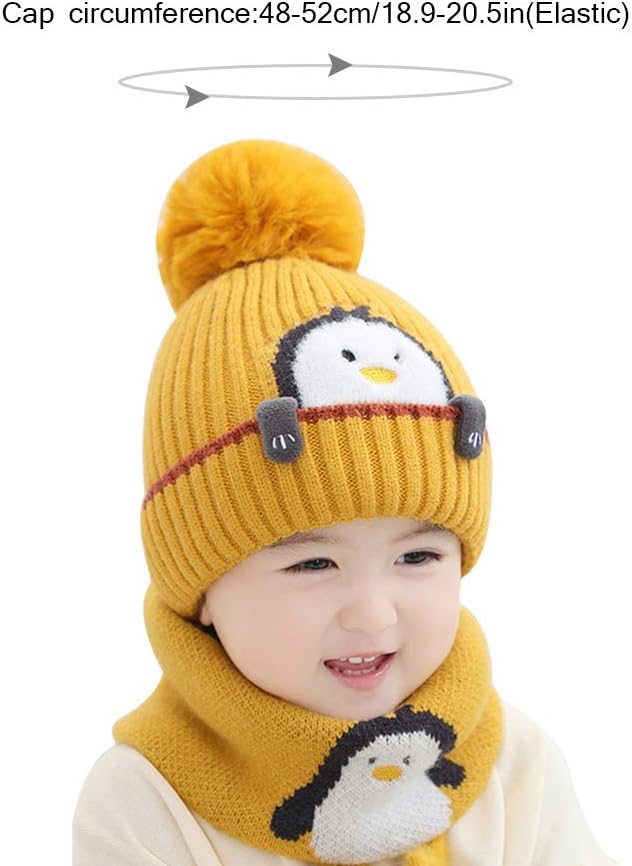 Toddler Knit Penguin Beanie Hat and Scarf Set Winter Hat for Boys and Women
