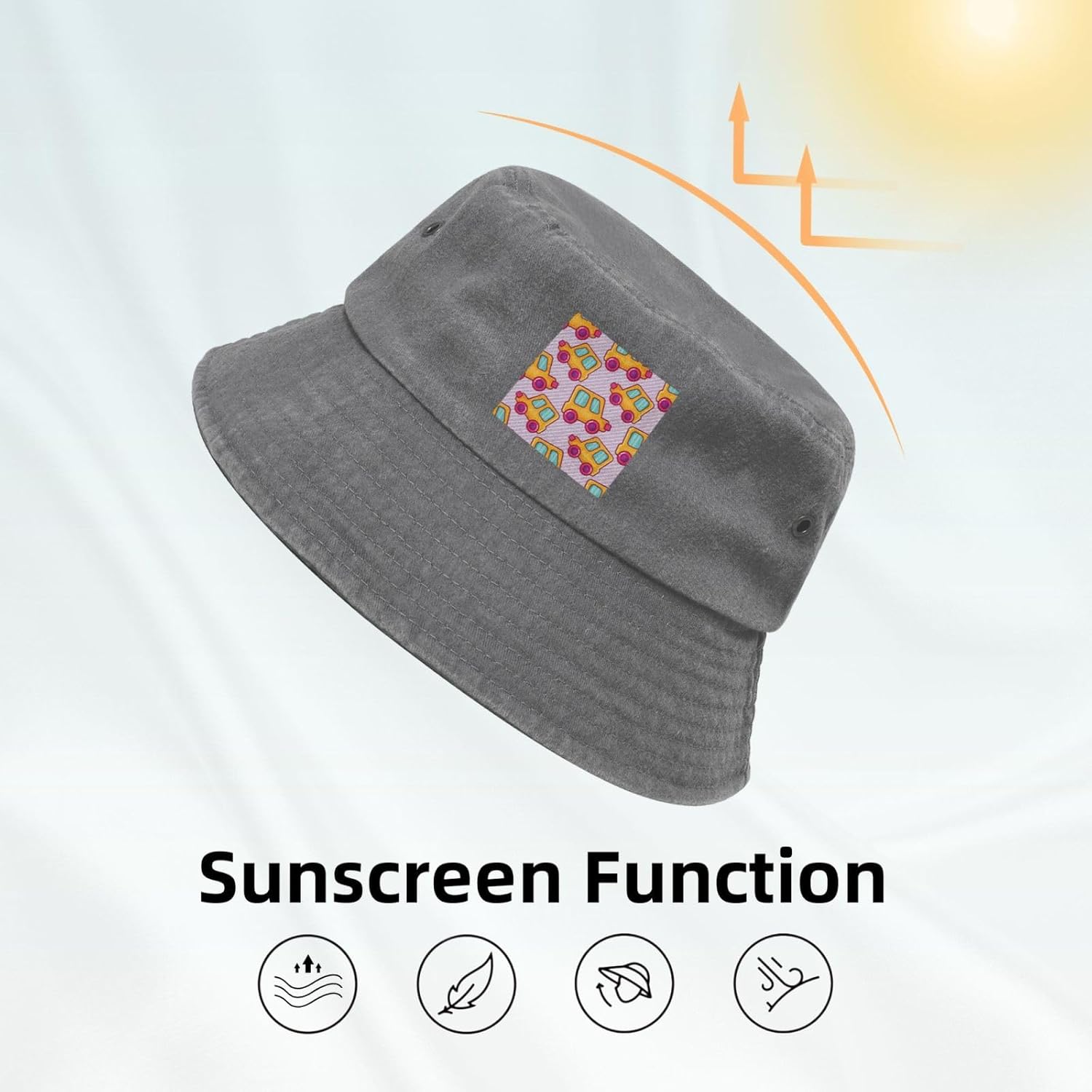 COMFORTABLE MATERIAL – Made Of 100% Washed Cotton, This Toy Automobile Seamless Sample Bucket Hat Is Comfortable, Sturdy, Breathable And Snug To Put on In Most Seasons. One Measurement Suits Most.