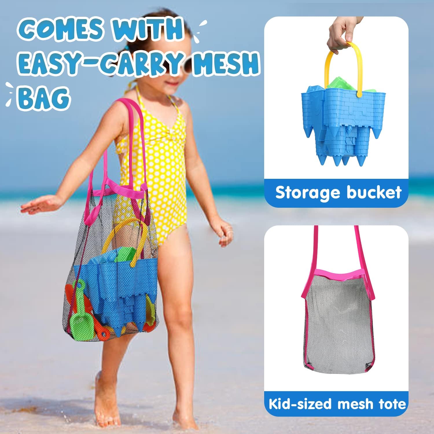 Seaside sand toys with reusable mesh bag – shake out sand, dry off rapidly, and simply carry the toy set wherever you go!