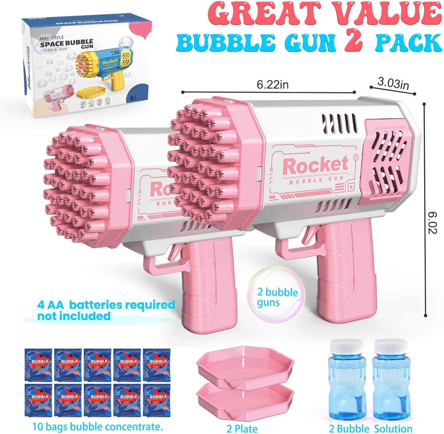 BUBBLE MACHINE 2-PIECE SET: This bubble machine consists of 2 items of bubble wands with additional 2 refills, and 10 luggage of bubble focus. And a pair of colours of bubble blower are supplied to match any shade (blue and pink)