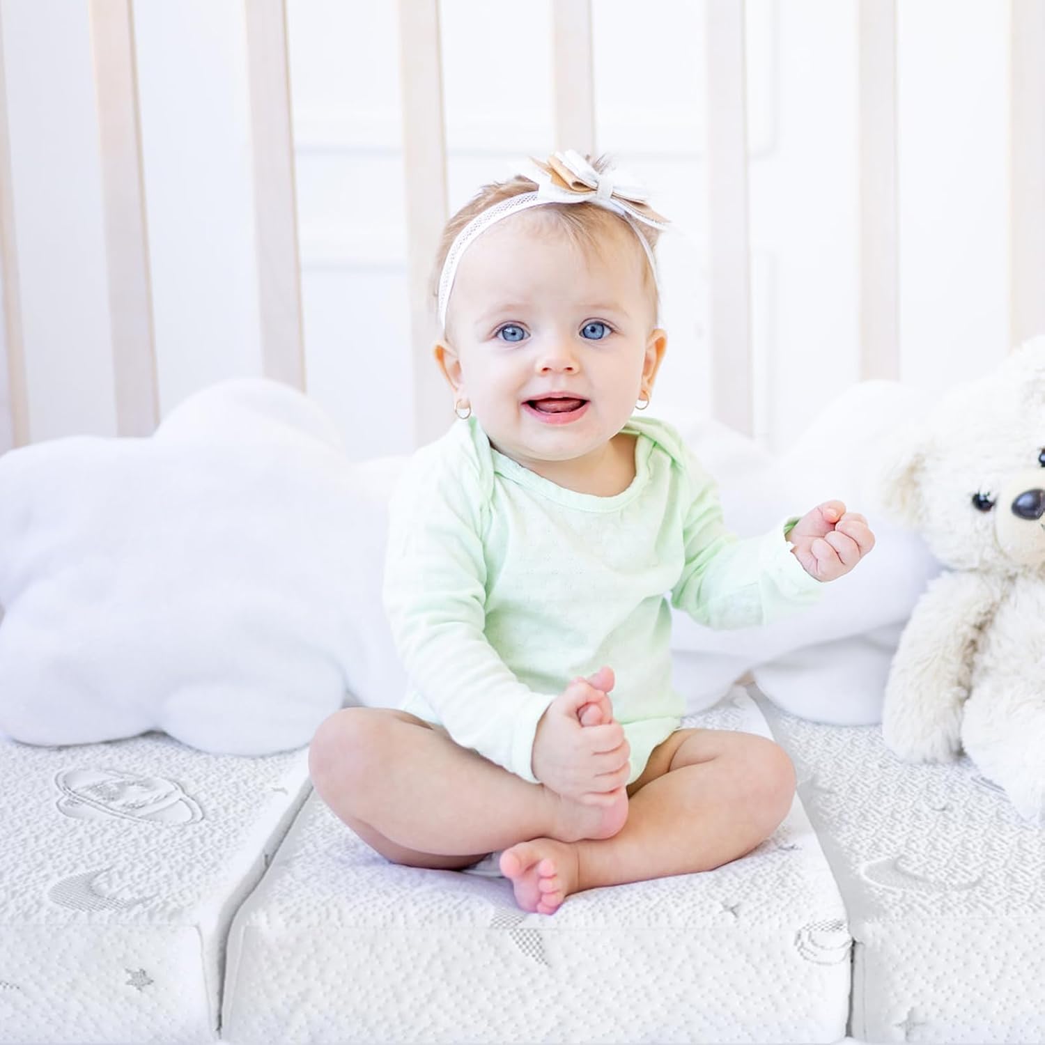 The Extremely-soft Jacquard Cowl on the pack n play mattresses creates a softer floor to your child to sleep on.