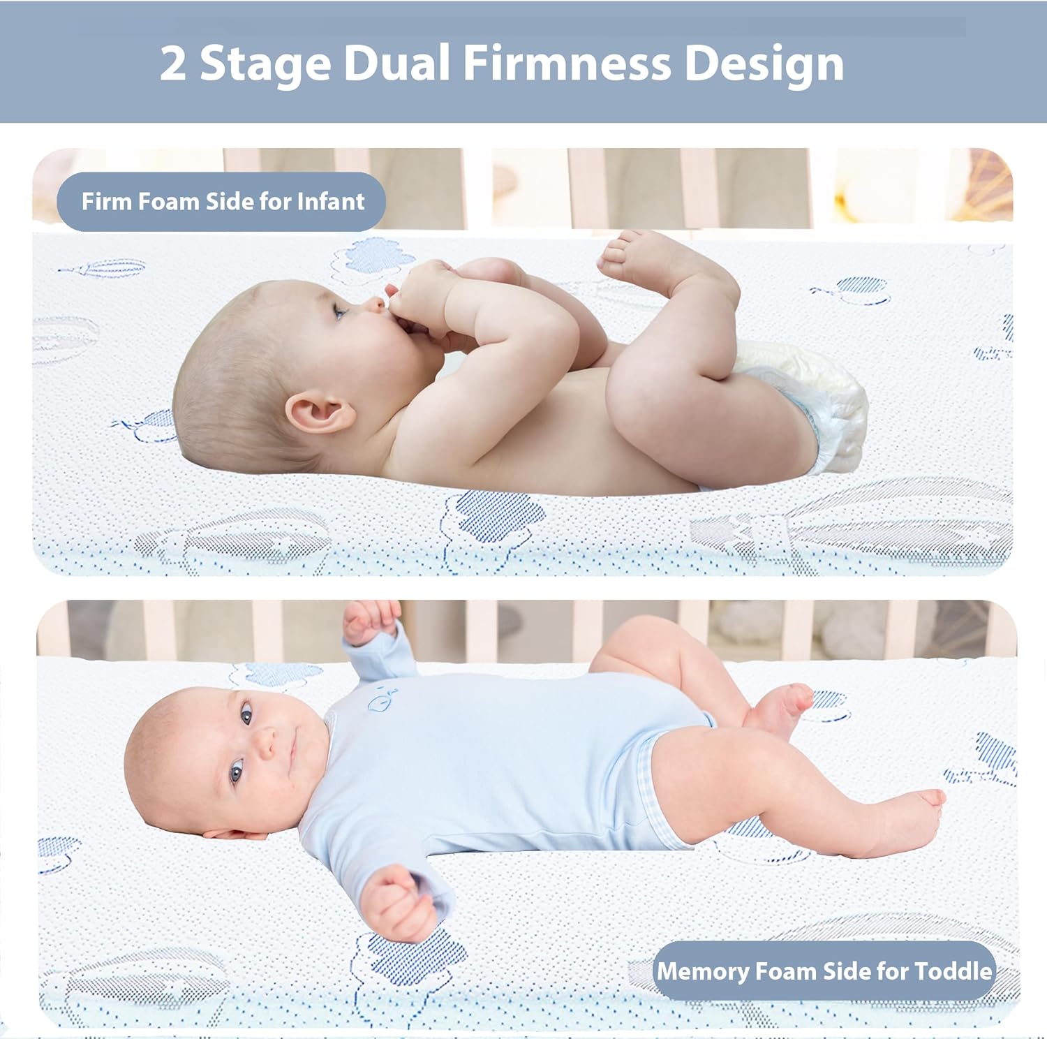 2 Stage Design: Our twin sided pack n play matress options 2 stage design.One facet is product of agency excessive density foam, it’s excellent for newborns and infants.The opposite facet options reminiscence foam for toddlers, offering a comfortable and comfy sleep floor as your baby grows.